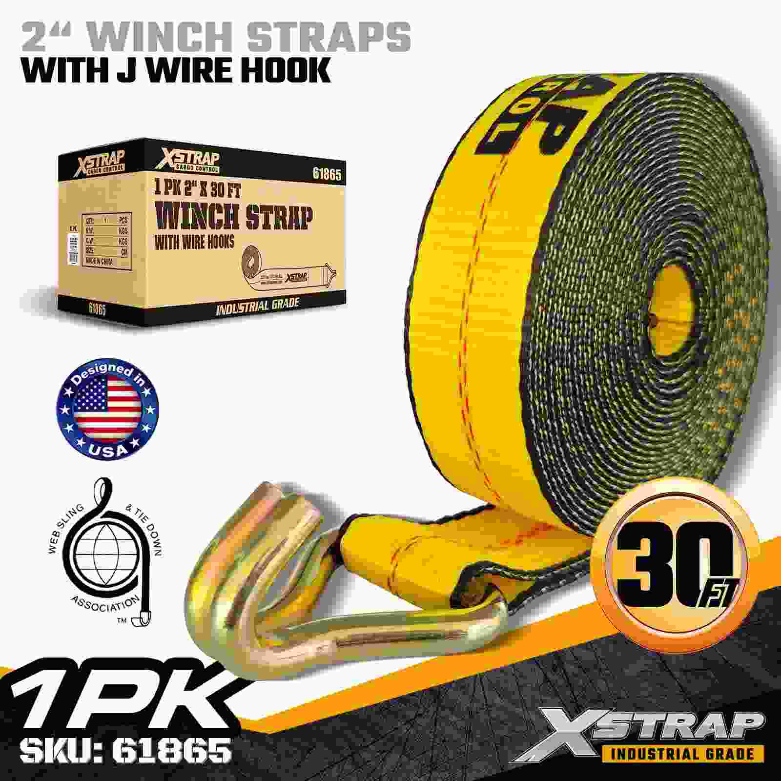 Xstrap 61865 2" × 30 fot Standard Winch Strap er en kraftig lastsikringsstropp designet for planhengere og profesjonell transport. Bygget med en forsterket Trådkrok og høystyrke polyesterbånd, leverer denne 2-tommers vinsjstroppen en 3333 lbs arbeidsbelastningsgrense og 10 lbs-styrke, gir pålitelig ytelse for 00 lbs. trelast, paller, rør, maskineri og generell frakt under daglige transporter.