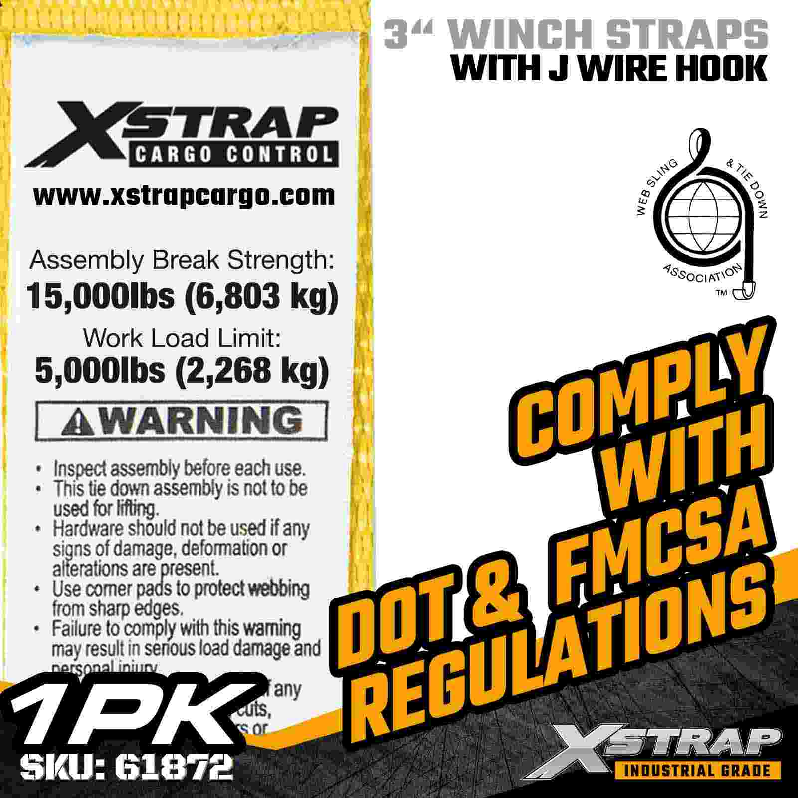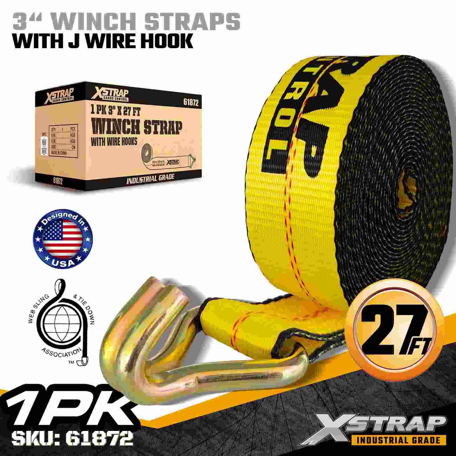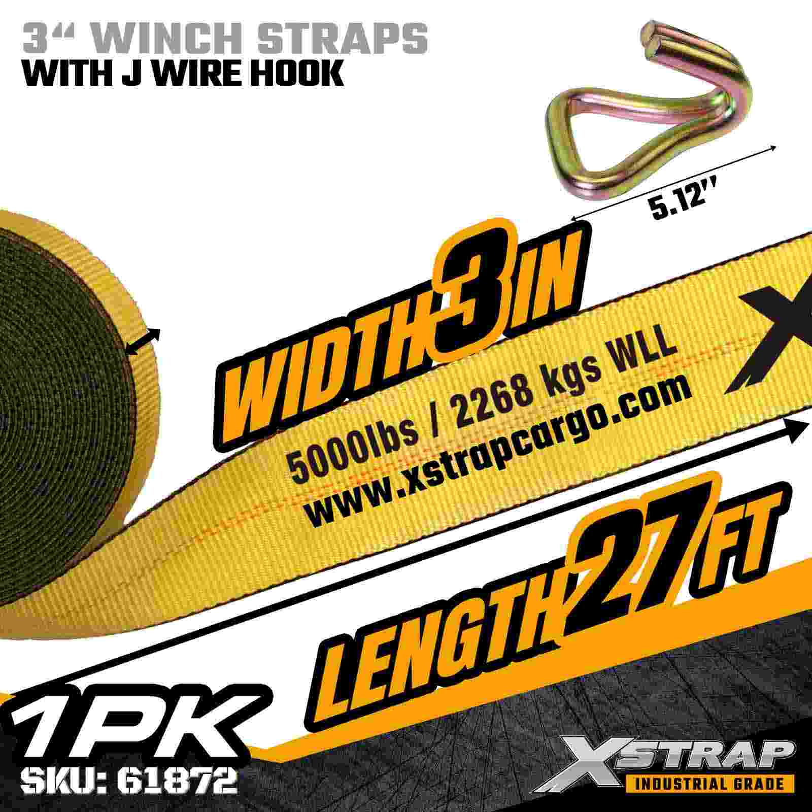 Xstrap 61872 3" × 27 fot Standard Winch Strap er en kraftig lastsikringsløsning designet for planhengere og industriell transport. Utstyrt med en forsterket Trådkrok og ekstra bred 3-tommers polyesterbånd, leverer denne 3-tommers vinsjstroppen en 5000 lbs Working Load Limit, Wire00 og 15 lbs grense. Krokdesign tilbyr fleksible festemuligheter, noe som gjør den ideell for operatører som trenger raske, allsidige tilkoblingspunkter under daglige transportoperasjoner.