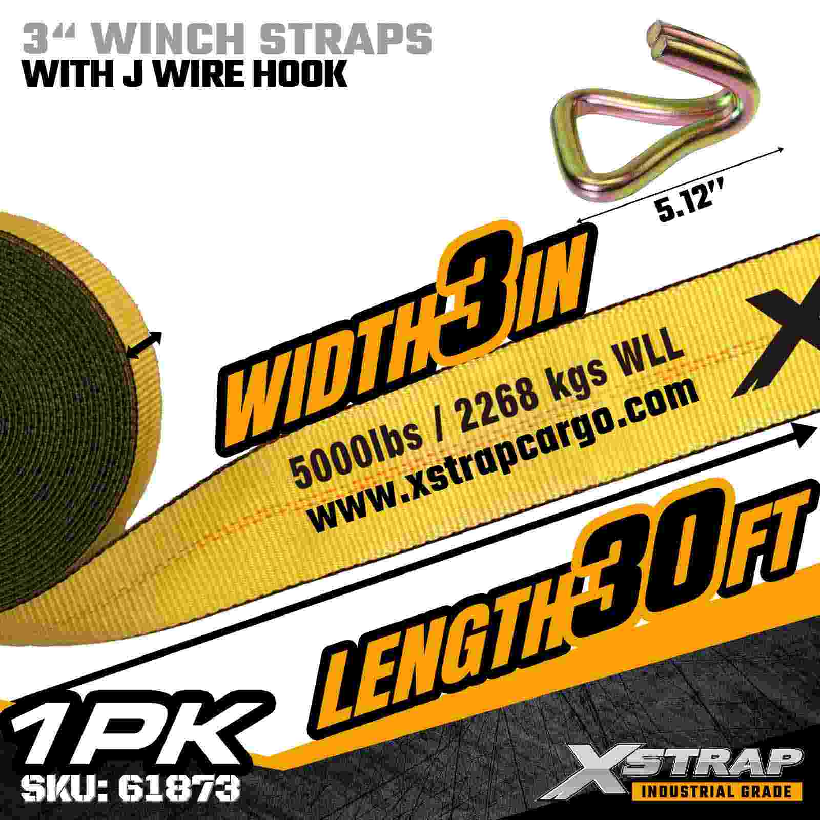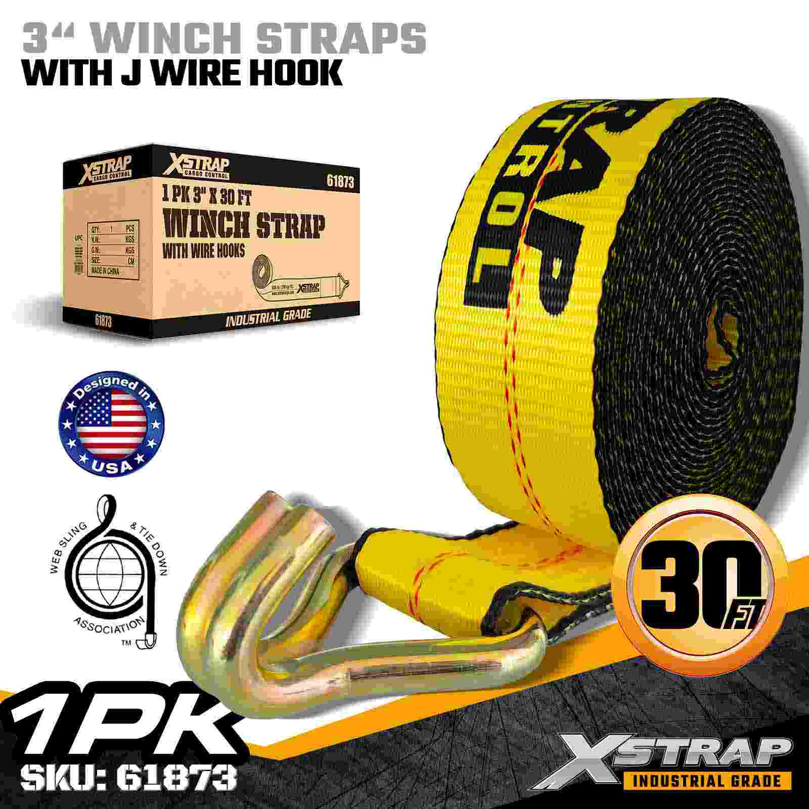 Xstrap 61873 3" × 30 fot Standard Winch Strap er en kraftig lastsikringsstropp designet for planhengere og overdimensjonert gods. Med en forsterket Trådkrok og ekstra bred 3-tommers polyesterbånd, leverer denne 3-tommers vinsjstroppen en 5000 lbs, 500 lbs og 1 lbs grense Styrke Den utvidede lengden på 30 fot gir ekstra rekkevidde, noe som gjør den ideell for å sikre bredere, høyere eller uregelmessig formet last som krever fleksible festealternativer.