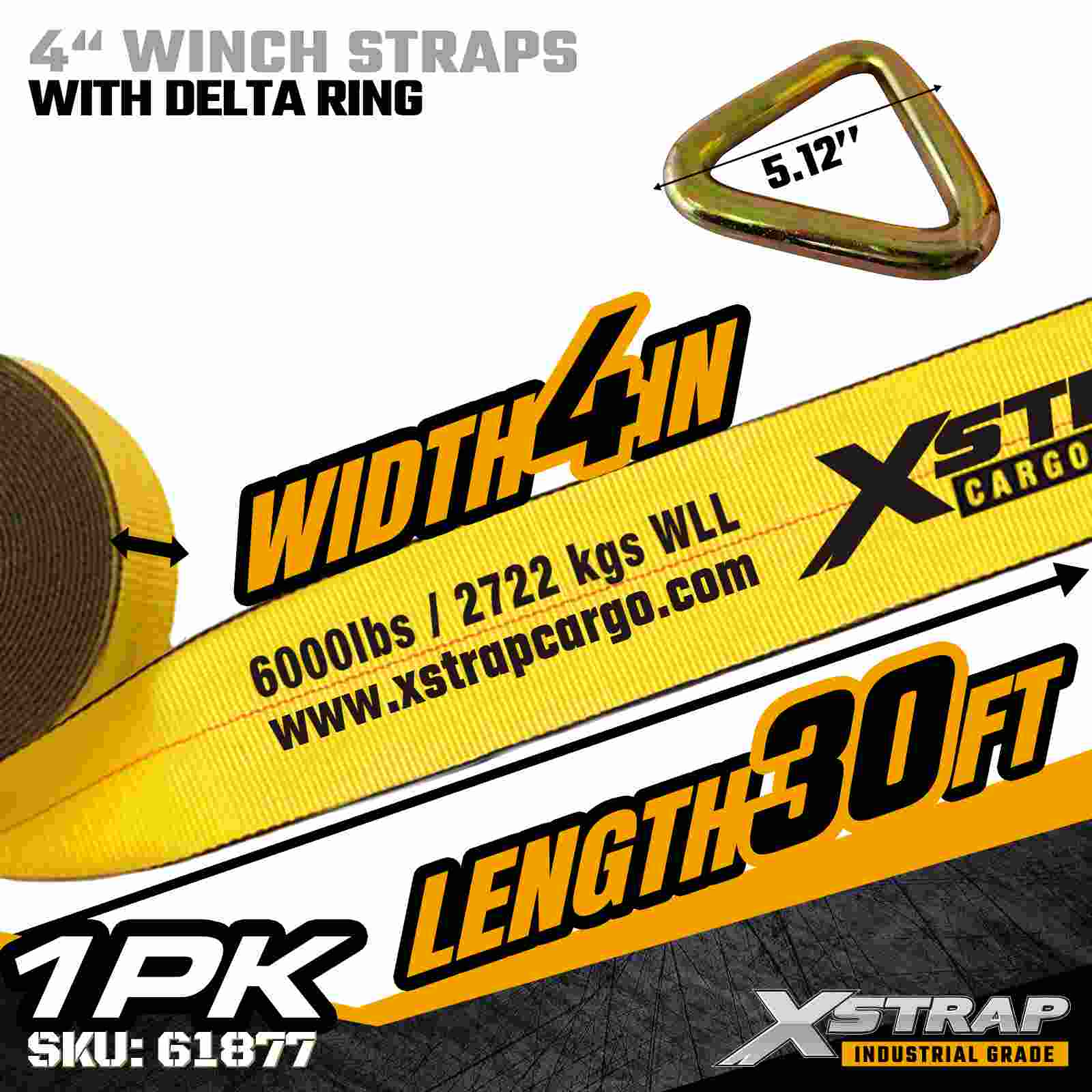 Xstrap 61877 4" × 30 fot Standard Winch Strap er en lastsikringsstropp med høy kapasitet og utvidet rekkevidde konstruert for planhengere og overdimensjonert industrifrakt. Med en forsterket Delta-ring og ultrabred 4-tommers polyestervev gir denne 4-tommers vinsjstroppen 00 Limbits og Work 00 Limit 6, Work 1 lbs Break Strength Den utvidede lengden på 30 fot gir ekstra rekkevidde, noe som gjør den ideell for å sikre brede, høye eller uregelmessig formet last som krever flerveis forankring og forbedret stabilitet.