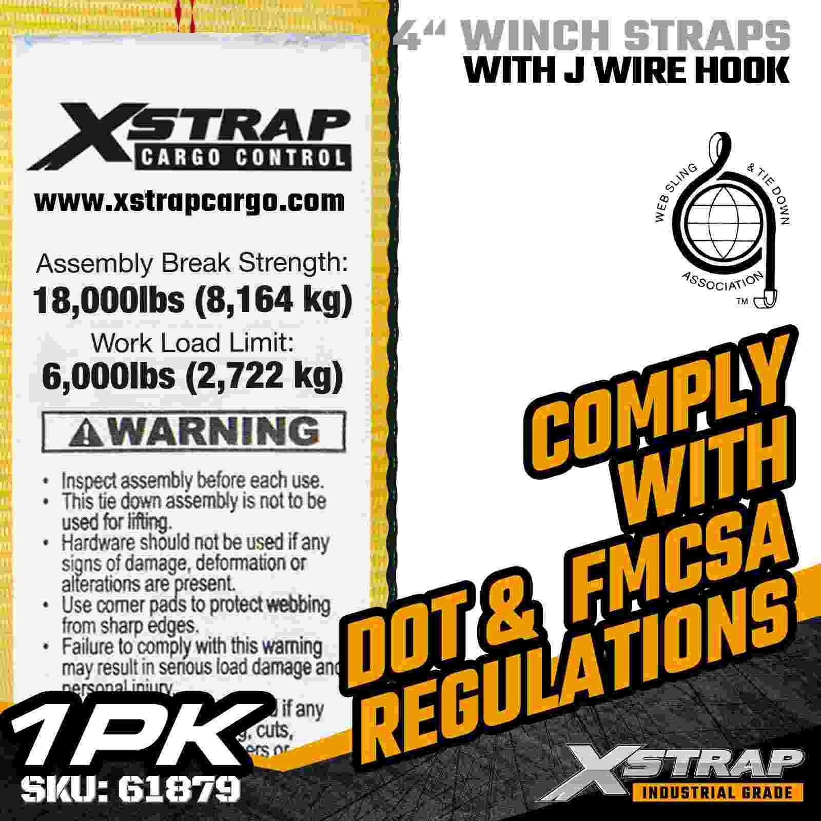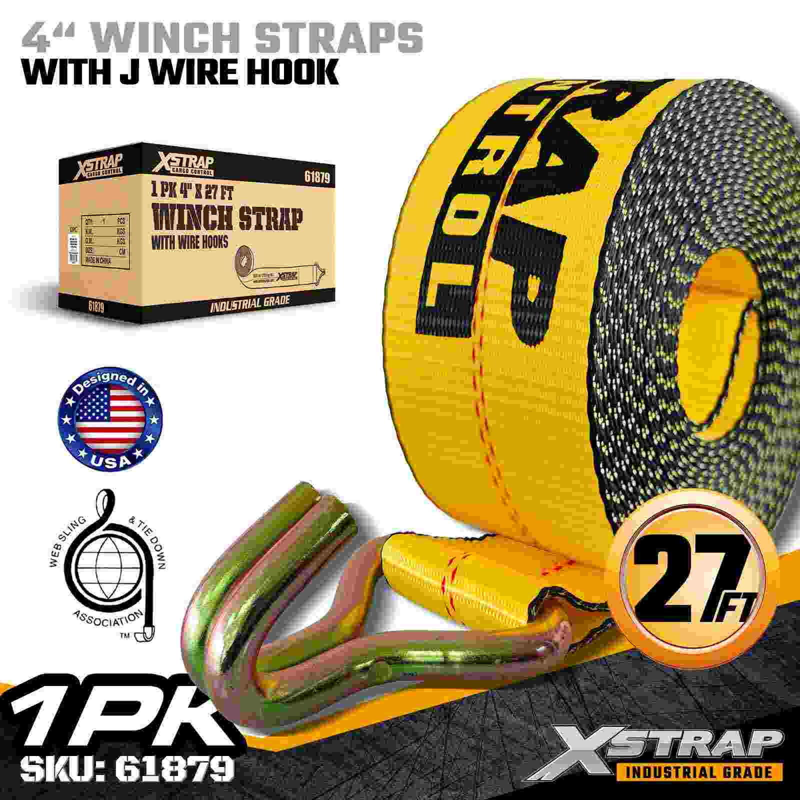 Xstrap 61879 4" × 27 fot Standard Winch Strap er en kraftig, fleksibel forankringsreim for lastesikring designet for planhengere og industriell transport. Med en forsterket Trådkrok og ultrabred 4-tommers polyestervev, gir denne 4-tommers vinsjstroppen 6000 lb, 800 lbs og 6000 lbs. Styrke Wire Hook-designen tilbyr allsidige festealternativer, noe som gjør den ideell for operatører som trenger raske, tilpasningsdyktige tilkoblingspunkter for ulike frakttyper.