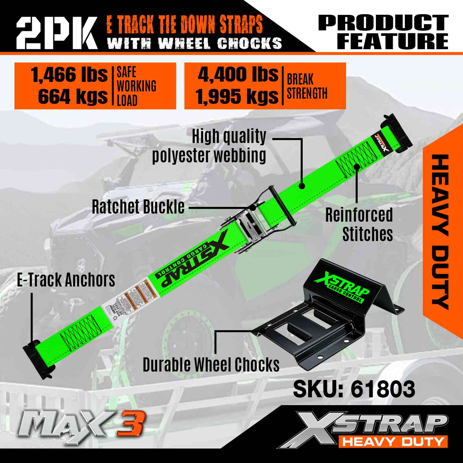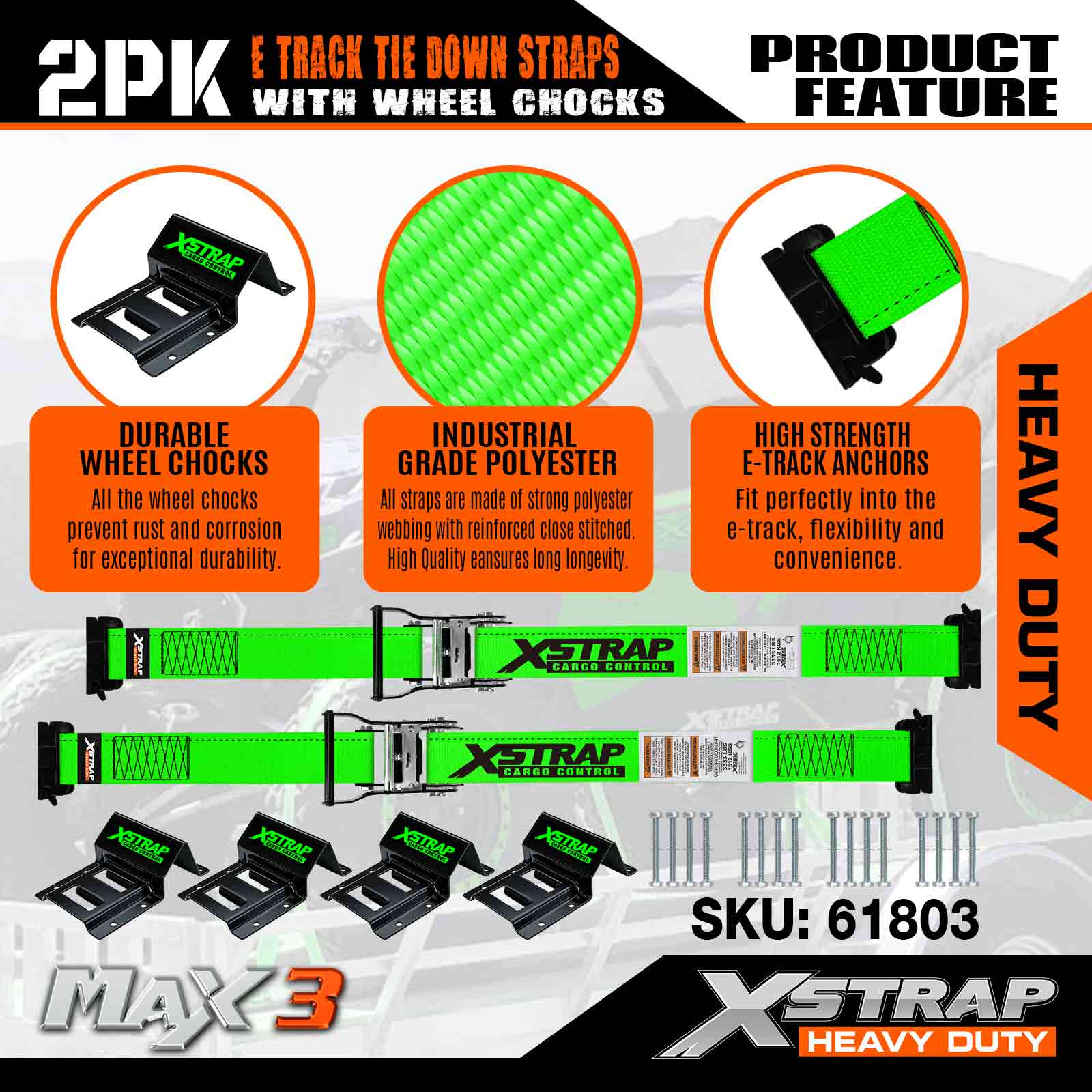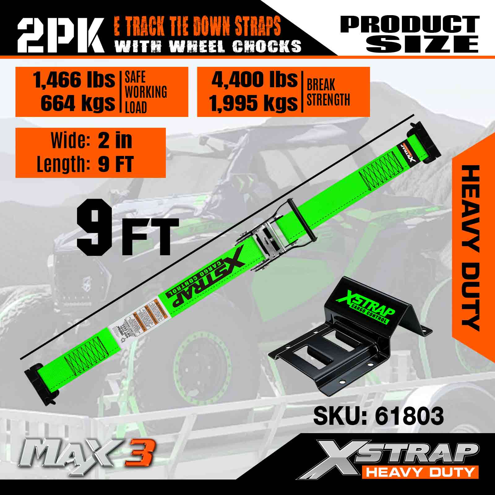 Xstrap E-Track hjulklossfestesett, 2in*9ft kraftige stropper for bilhenger UTV ATV, skrallefeste med dekkstropper (2 pakke)