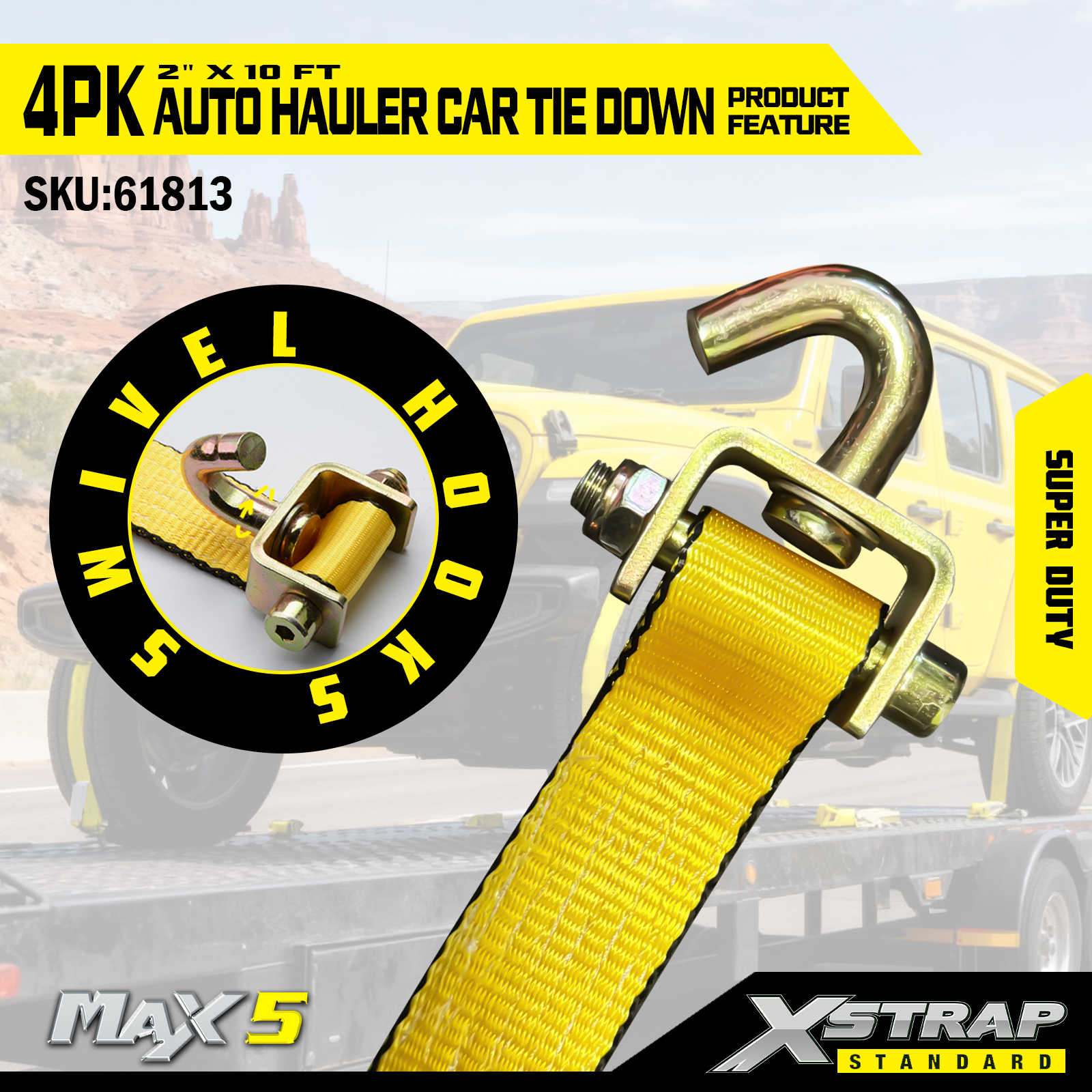 - Superduty lastekapasitet: Vurdert for 2 200 LBS sikker arbeidslast og 6 600 LBS bruddstyrke, den håndterer tunge kjøretøy og krevende transportforhold.