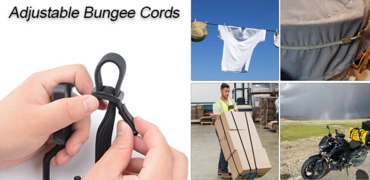 Justerbare strikksnorer gir økt stabilitet og redusert tendens til å grave i gjenstander. De er allsidige og egnet for et bredt spekter av bruksområder, inkludert utstyr, organisering av oppbevaring, feste av bagasje eller presenninger, sikre utendørsutstyr, hage, garasje eller reiseapplikasjoner.