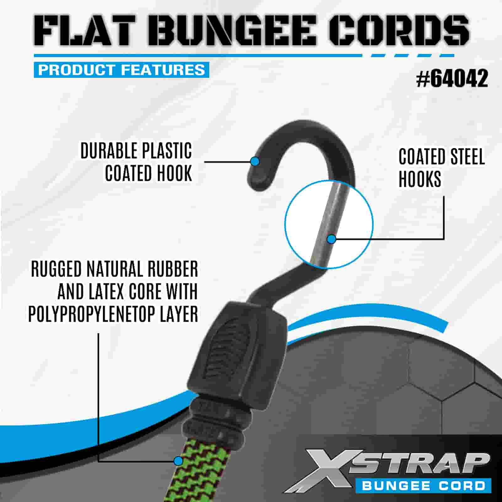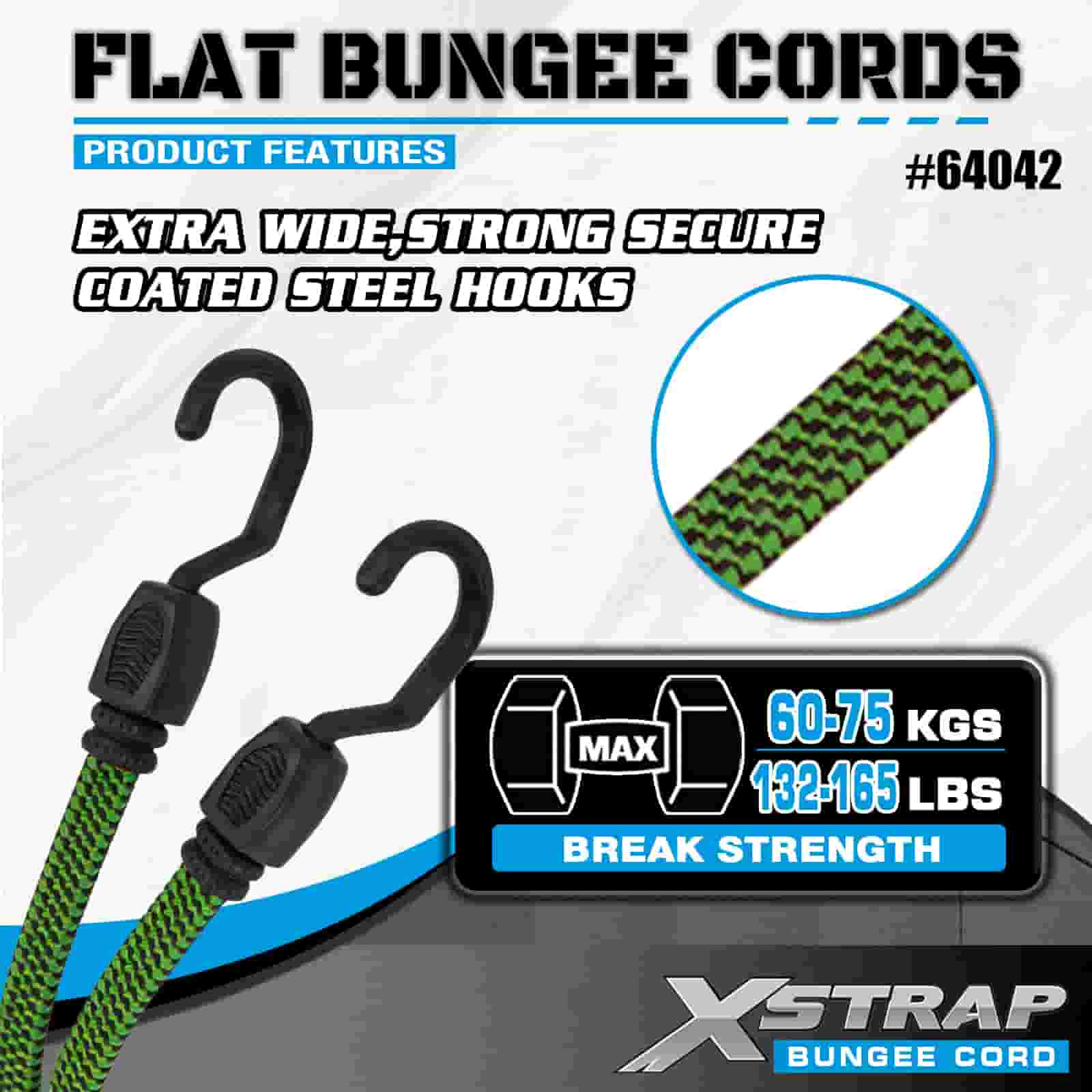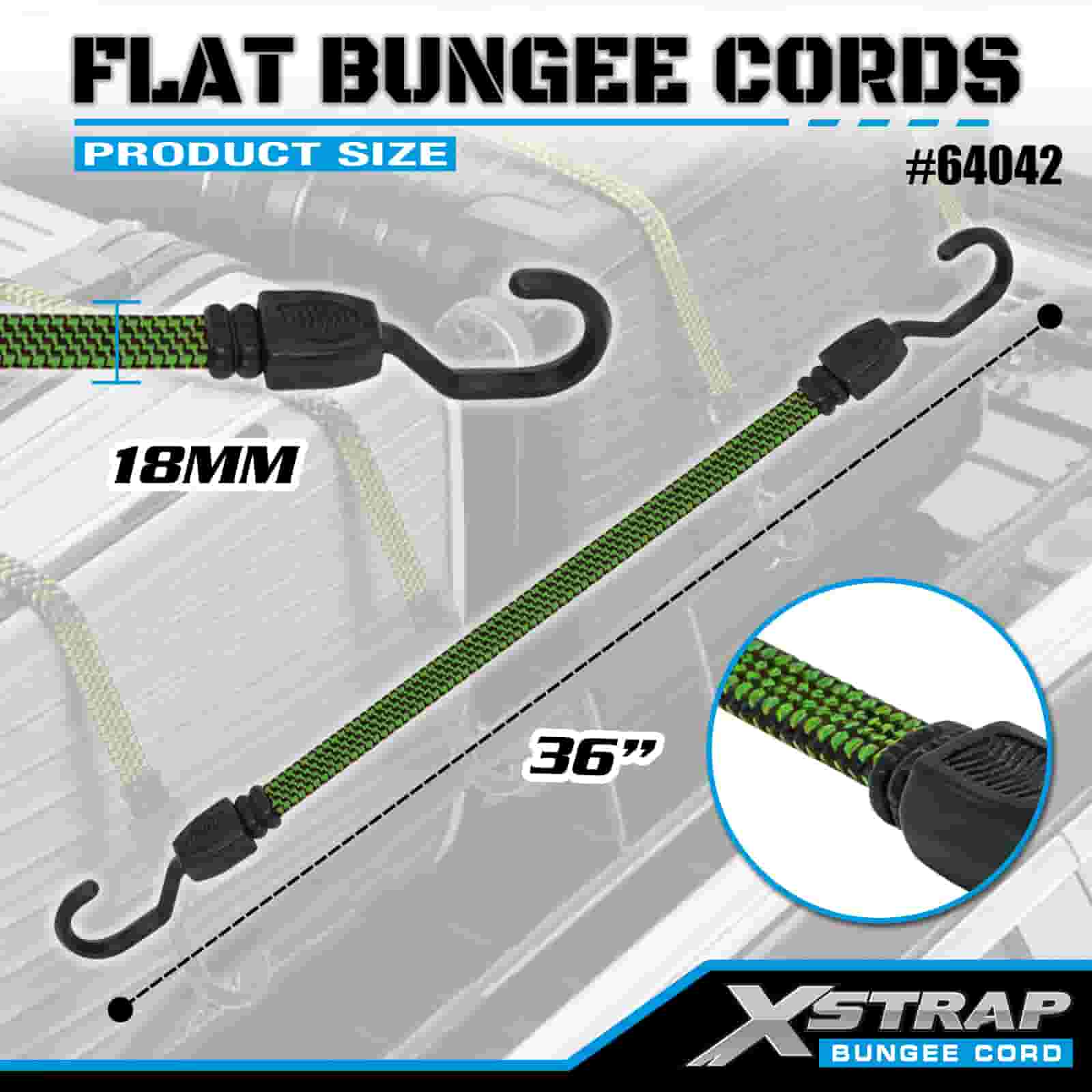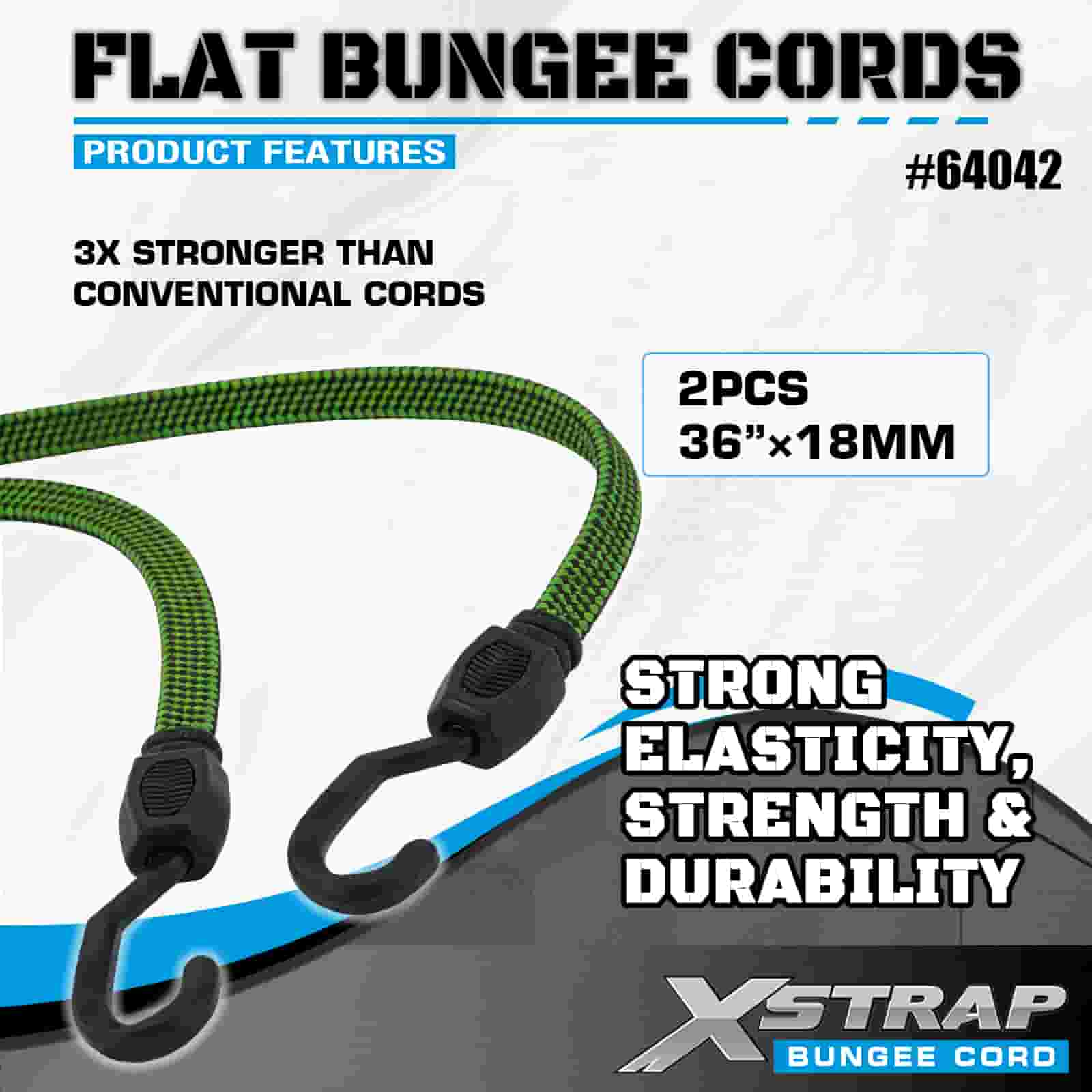 Xstrap 2PK Flat Bungee Cords 18 mm x 36", 132-165 lbs bruddstyrke med sterke kroker for lastkontroll .