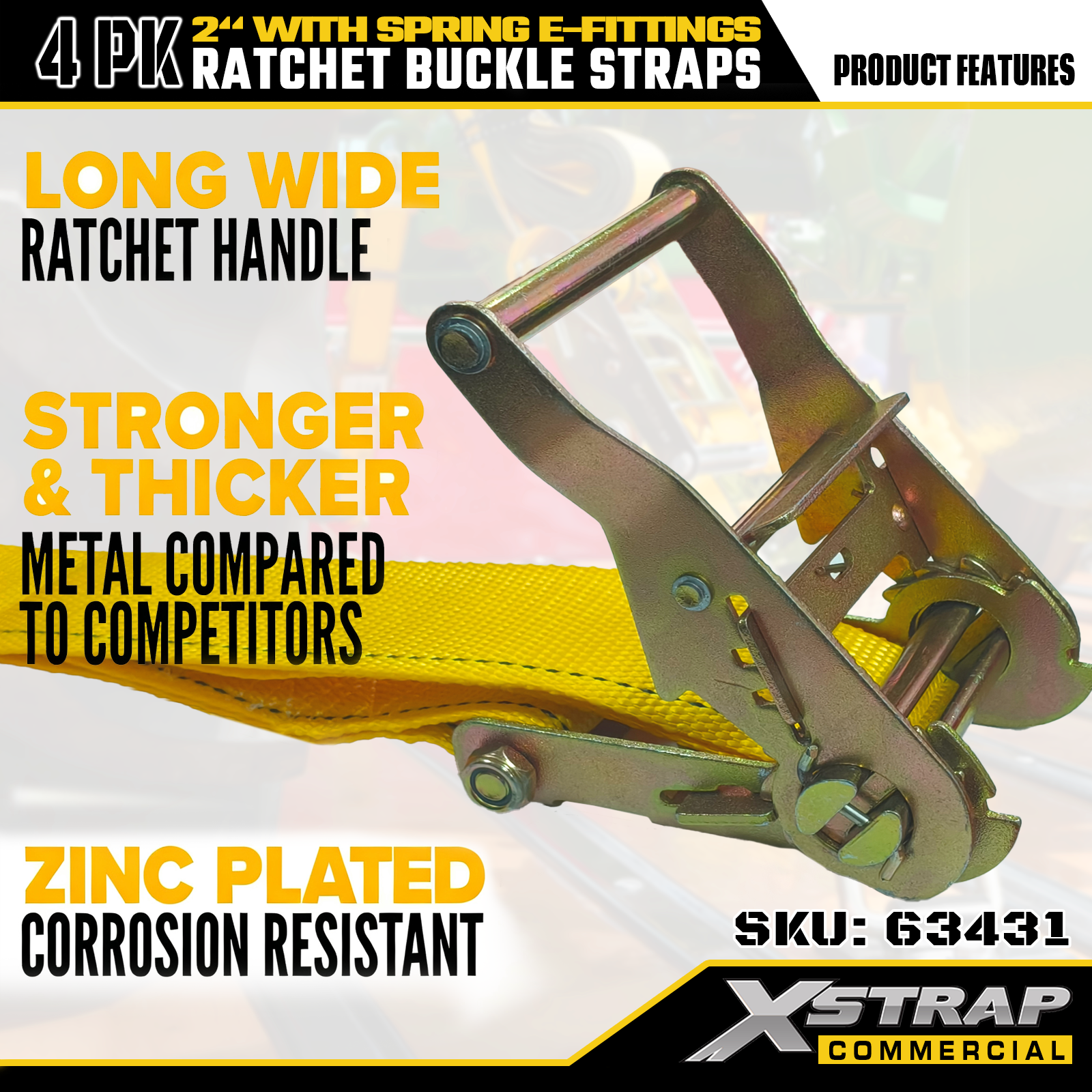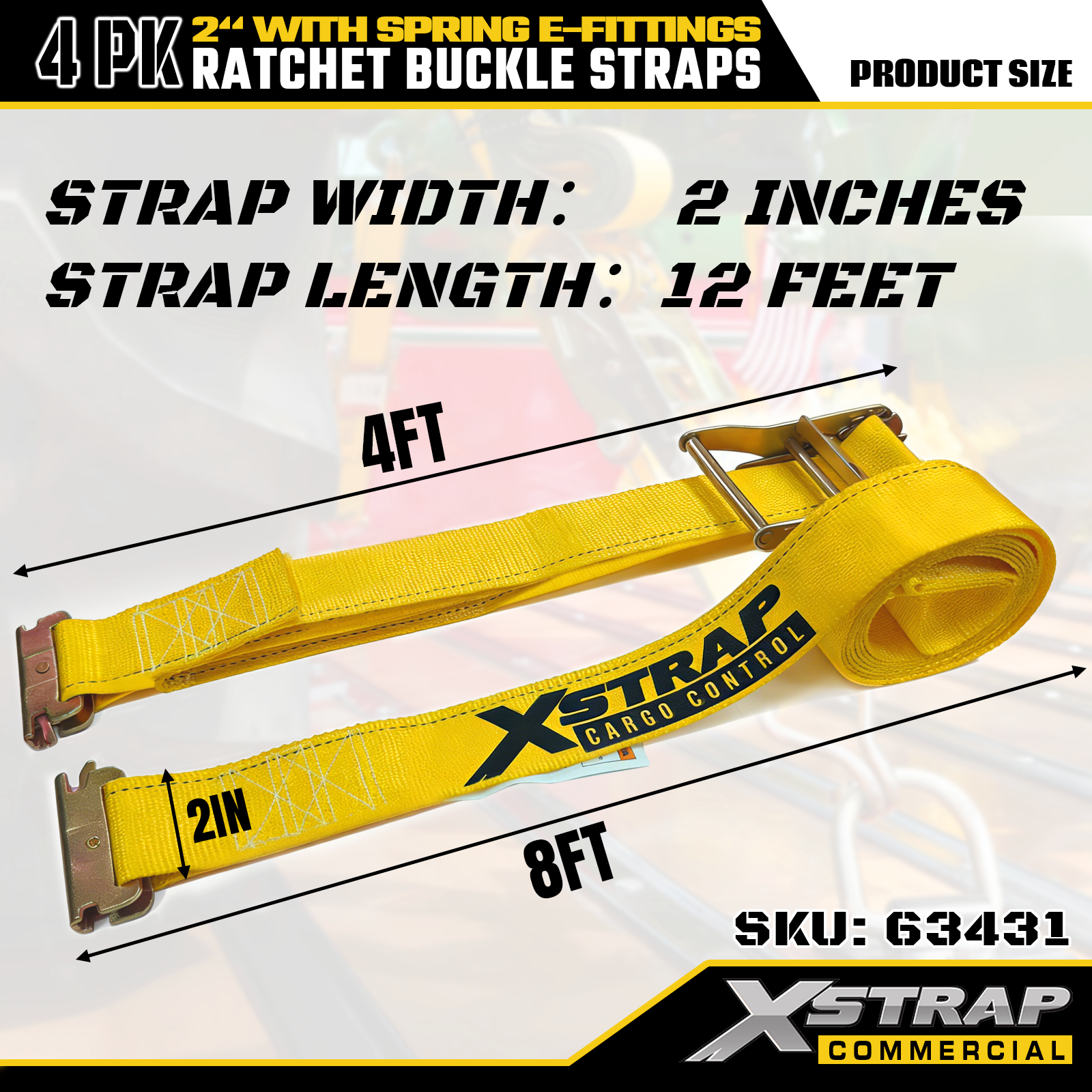 2" x 12" 4PK Skrallespennestropper med fjærende E-beslag
