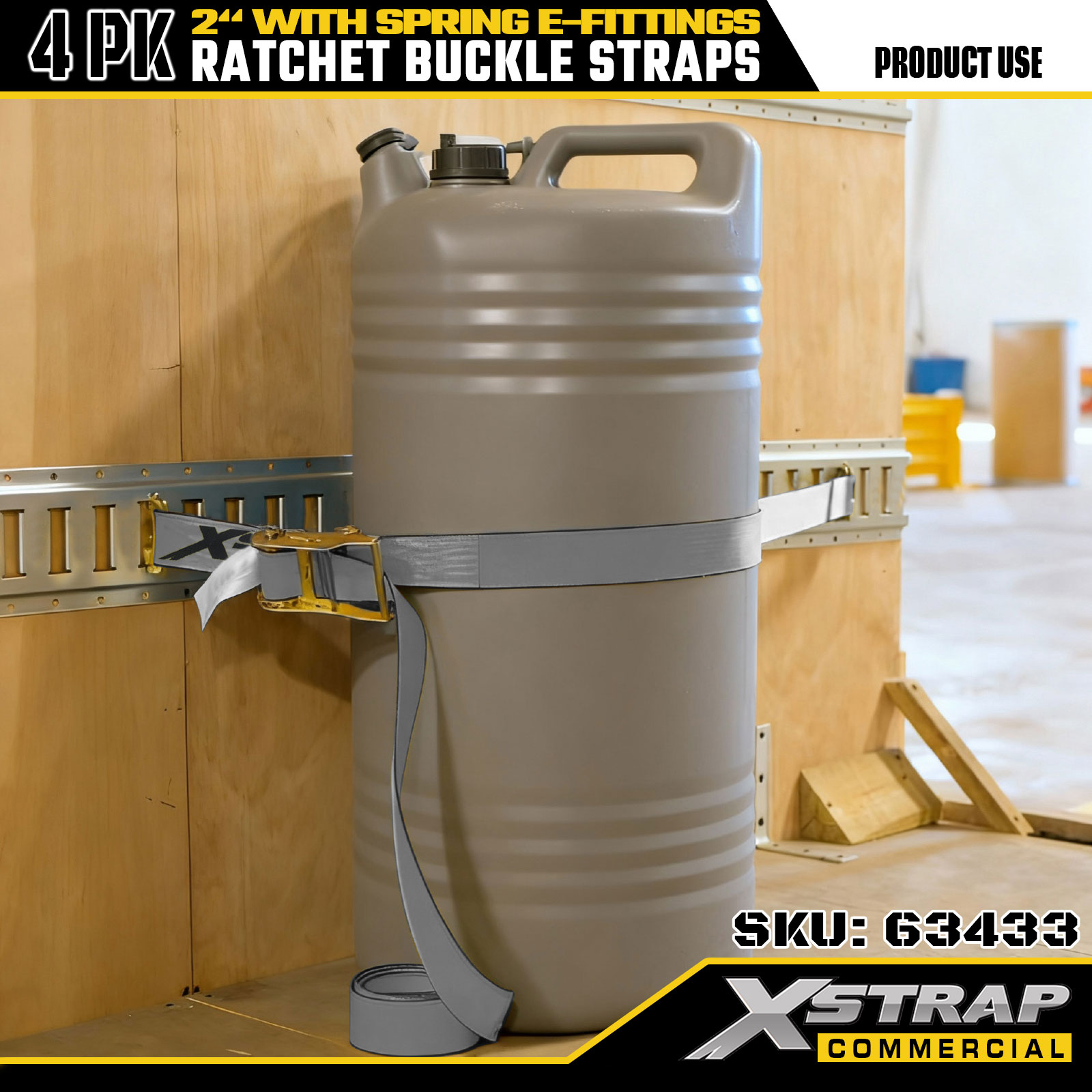 2" x 16" 4PK Skrallespennestropper med fjærende E-beslag