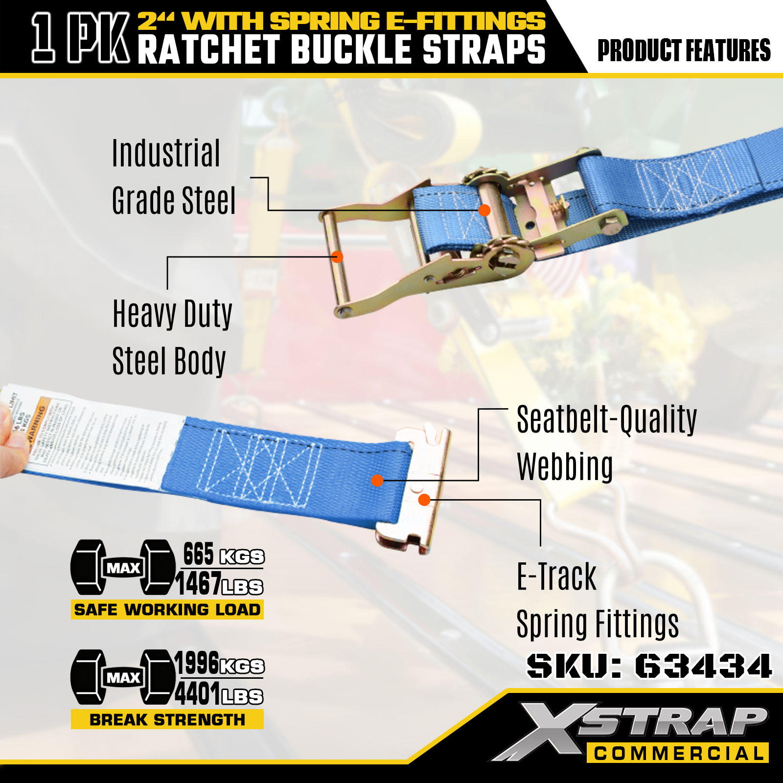 2" x 20" 1PK Skrallespennestropper med fjærende E-beslag