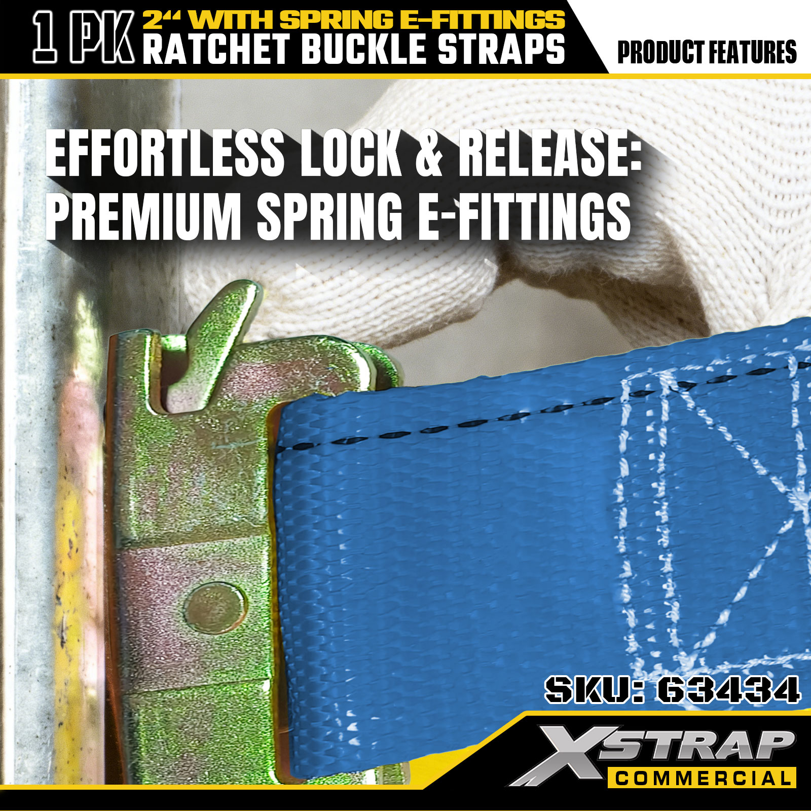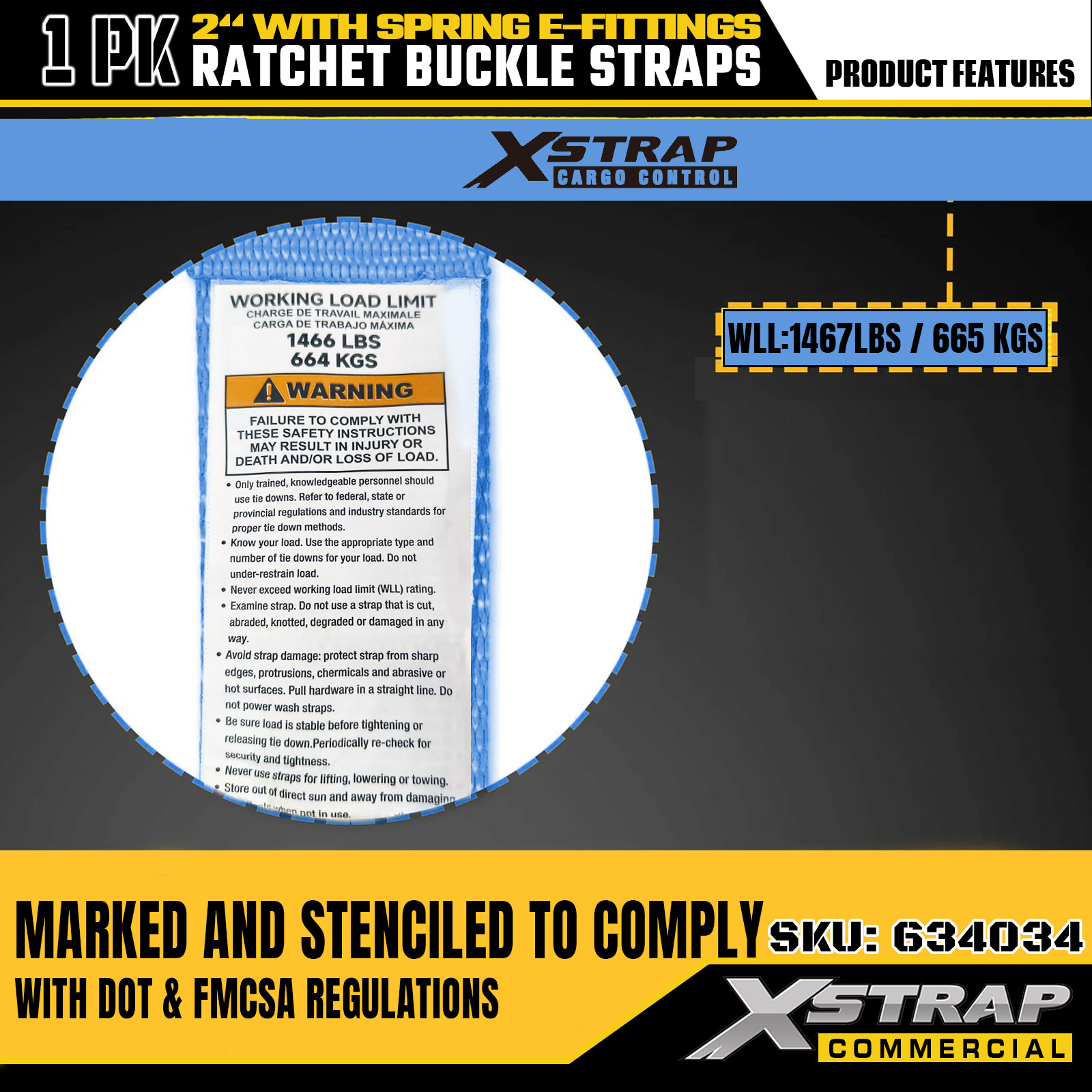 Xstrap 1 pakke skrallefestestropper, 2" x 20" polyester lastsikringsstropper, 1467 lbs sikker arbeidsbelastning og 4401 lbs bruddstyrke, med fjær-e-beslag for lastebil, klipper, ATV-er