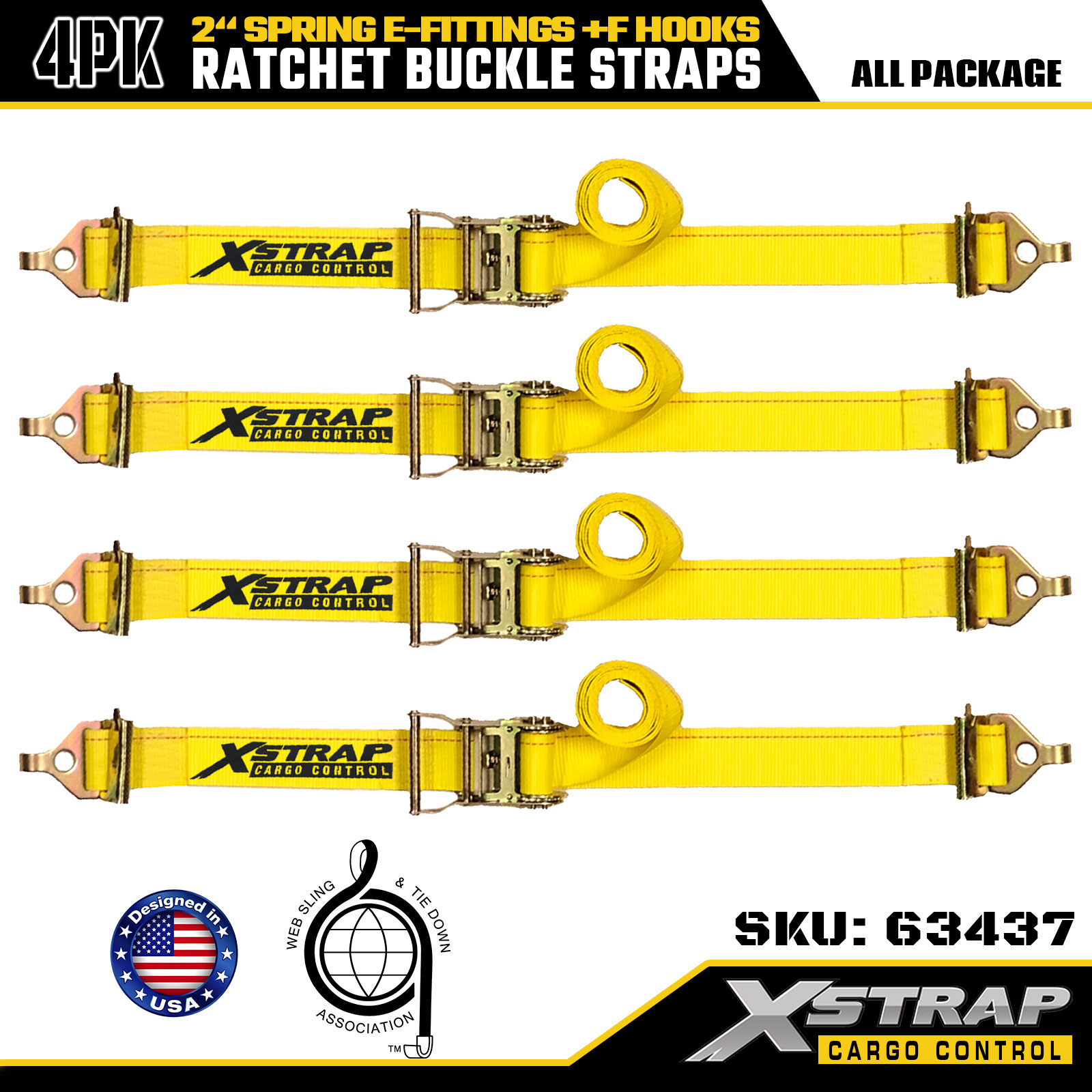 Xstrap 4-pakke Heavy Duty Ratchet Tie Down Straps, 2" x 12" Høystyrke polyester med fjær E-beslag og F-kroker, 733lbs Heavy Duty Cargo Tie Downs for trailere lastebiler varebiler og motorsykler