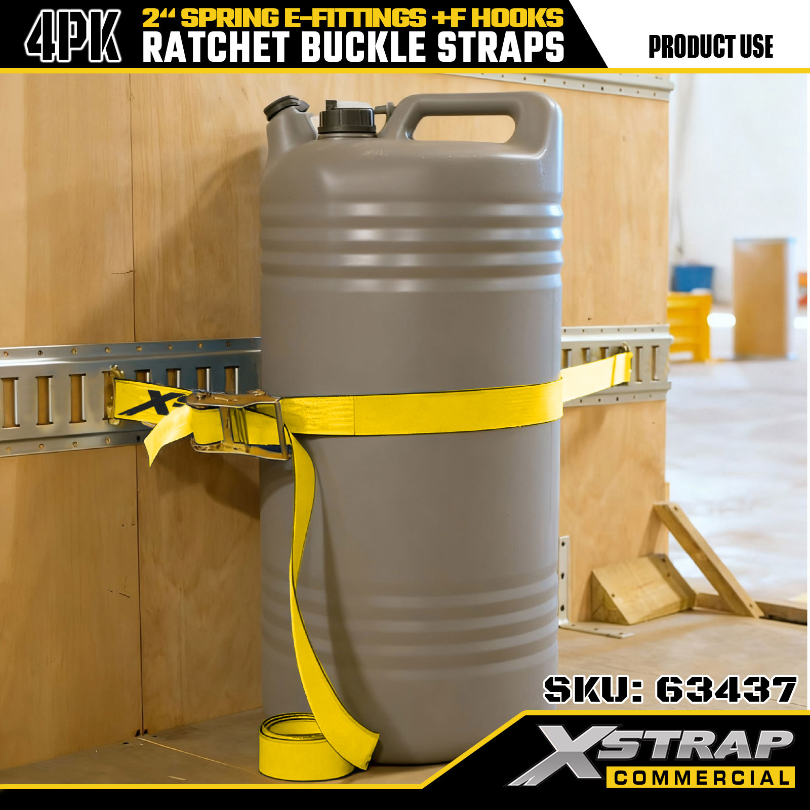 2" x 12" 4PK skrallestropper med fjær E-beslag og F-kroker
