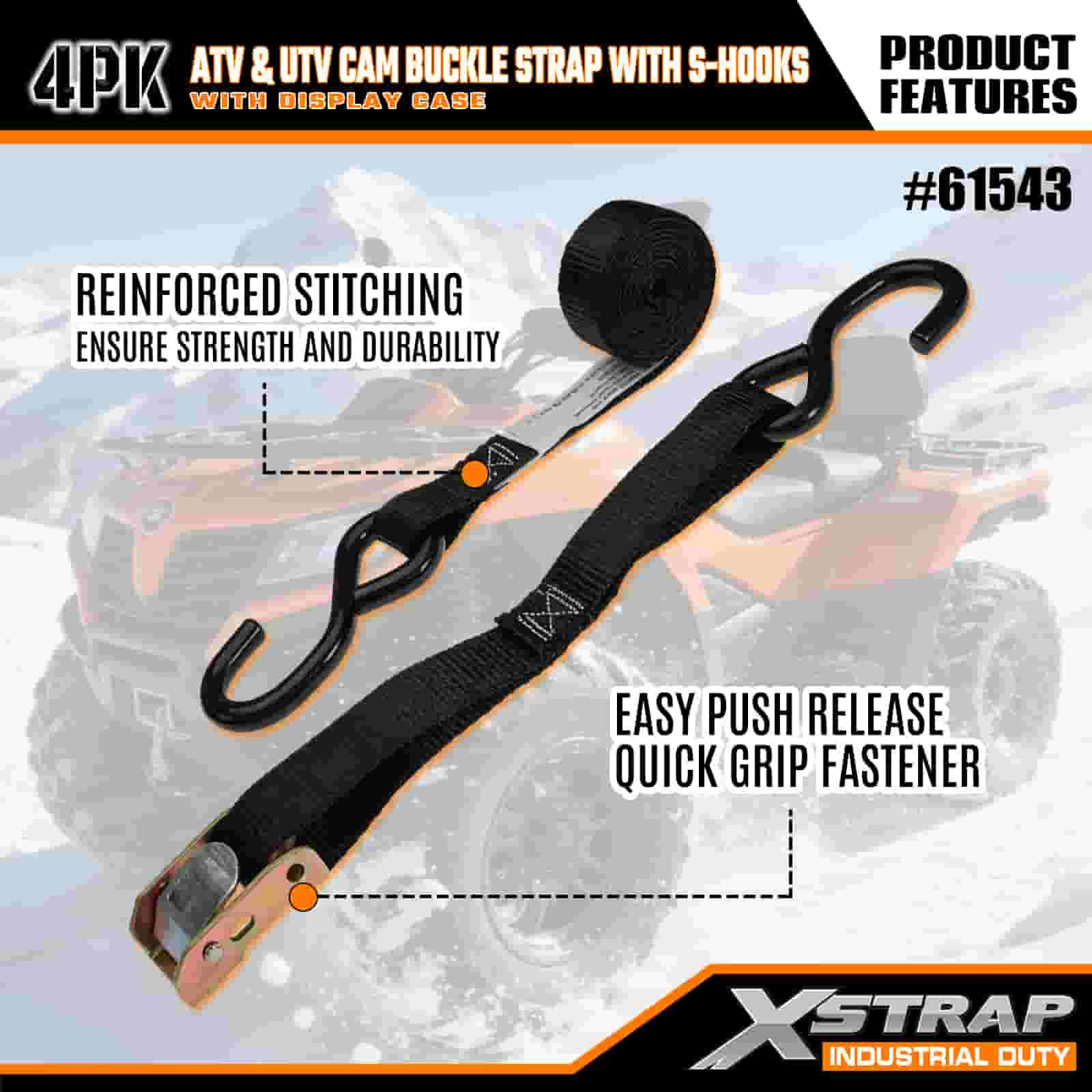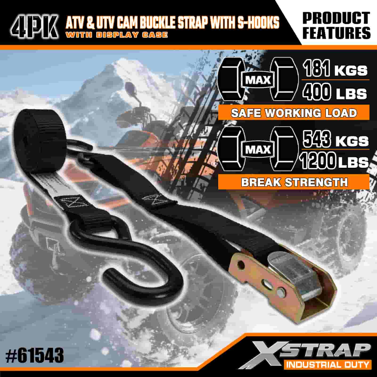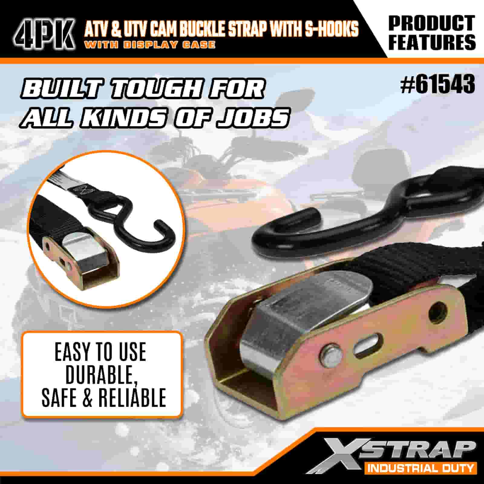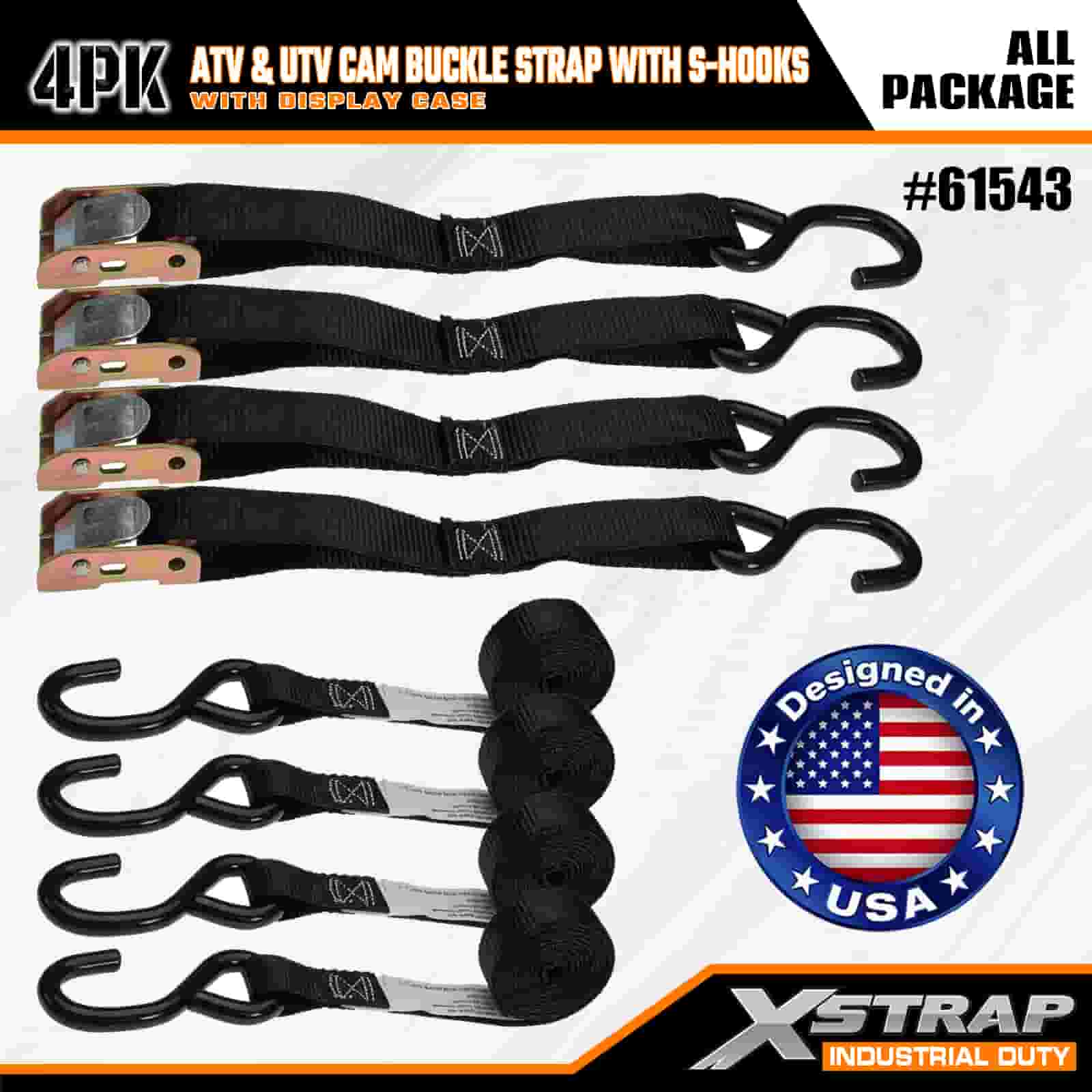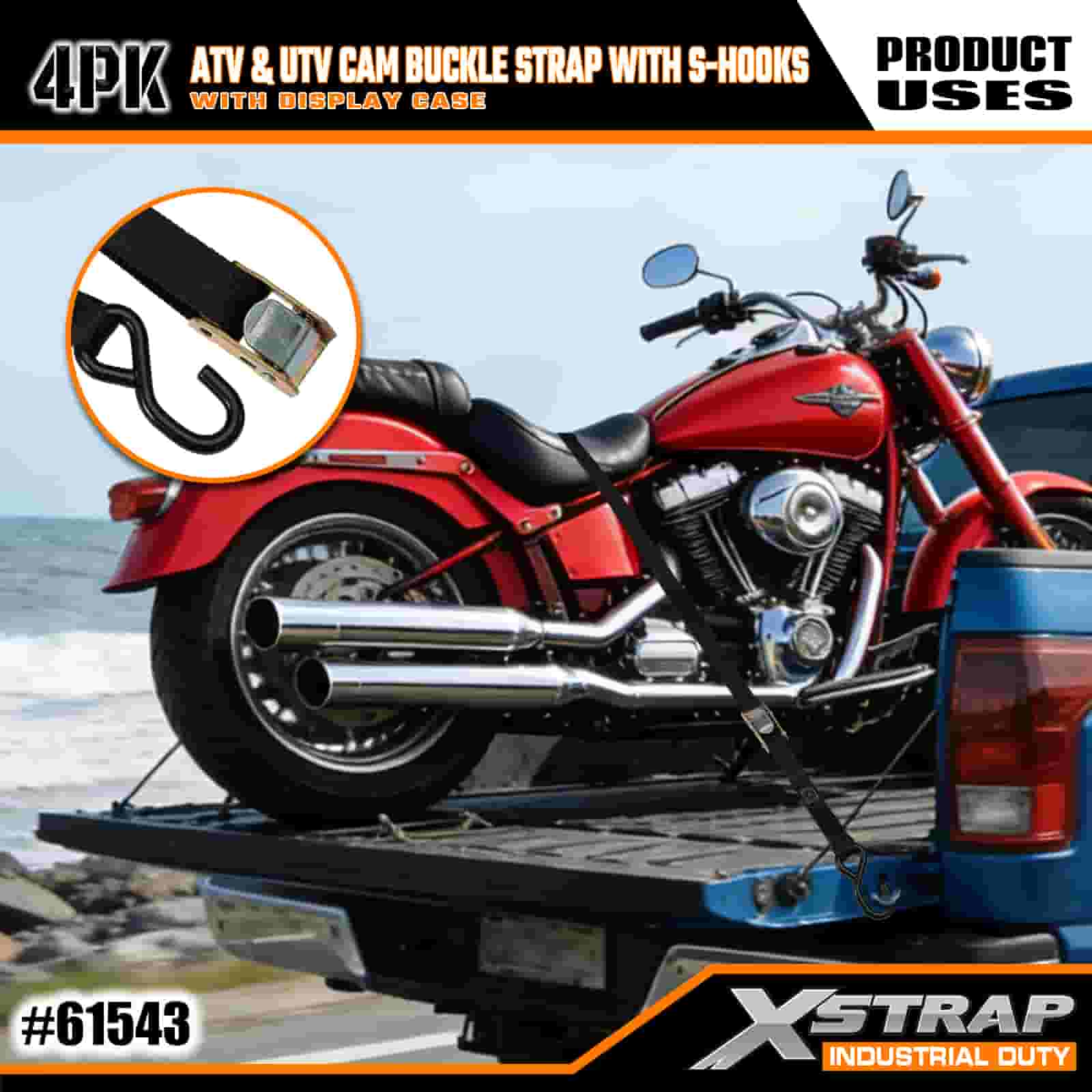 Xstrap 4PK ATV- og AUV-kameraspennestropp med S-kroker, 1" x 6' Polyester-festestropp Trekksperrespennestropp, 400lbs Kapasitet Cargo Surring Sikringsstropper med S-krok for den seriøse profesjonelle for å sikre lastehenger, flathenger, skibåt.