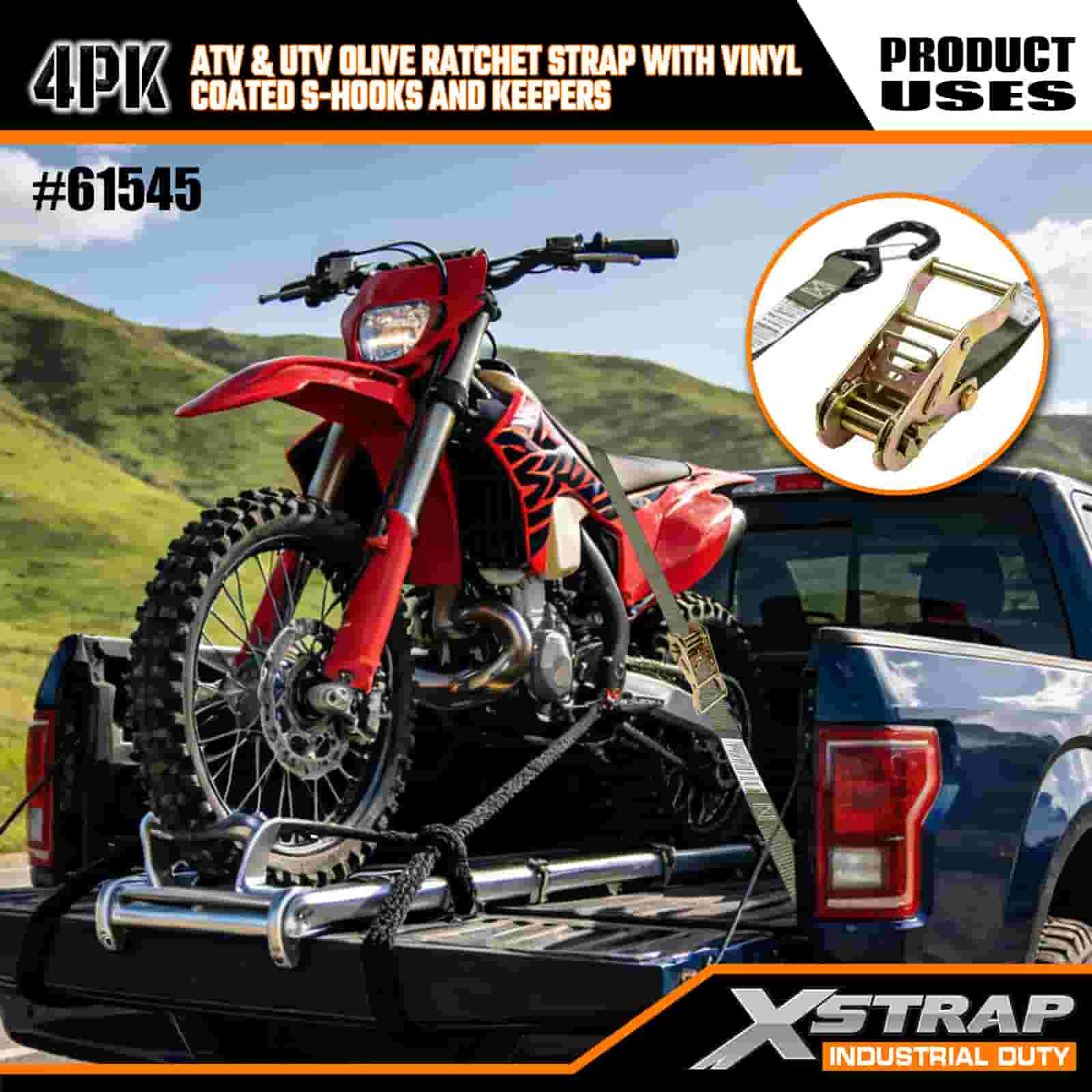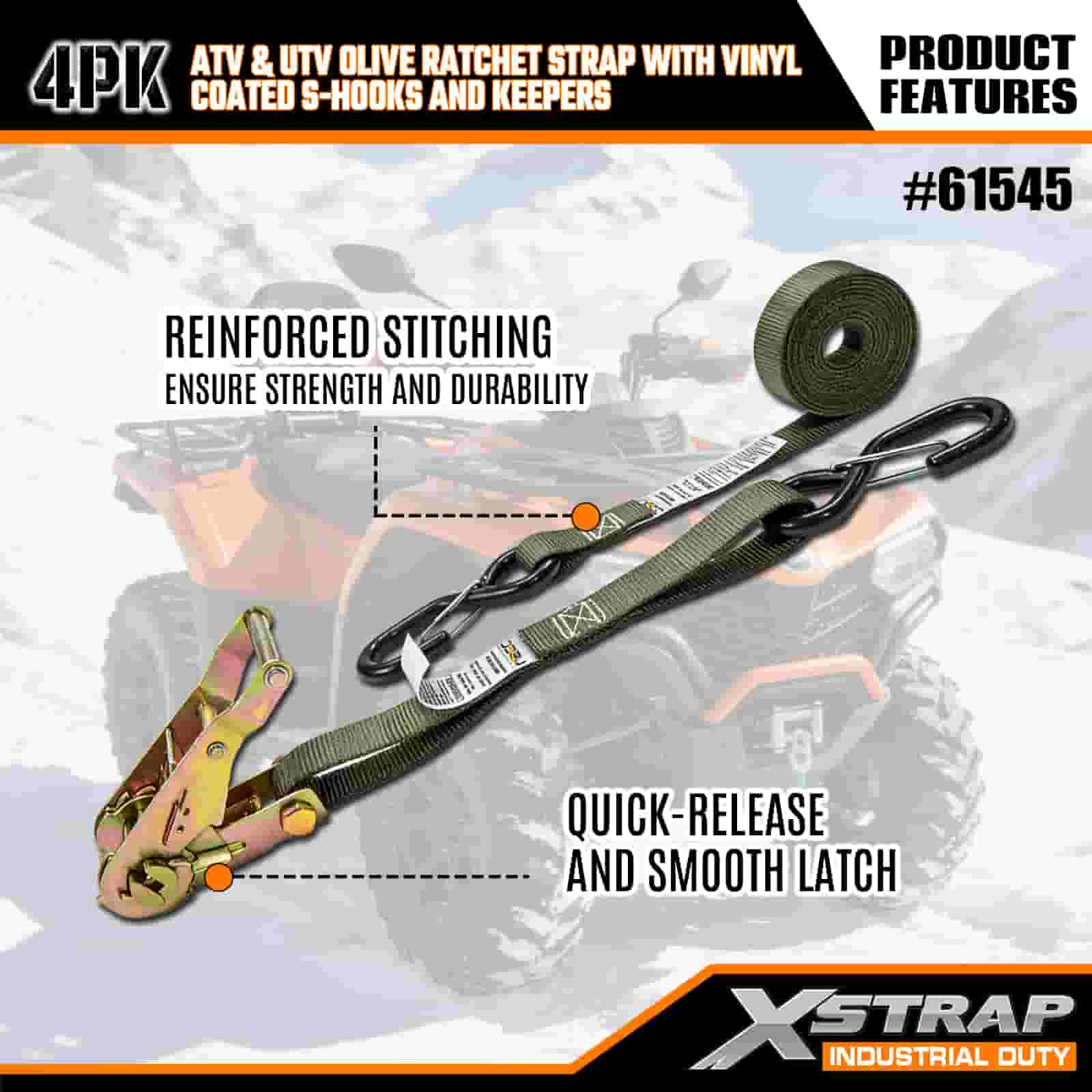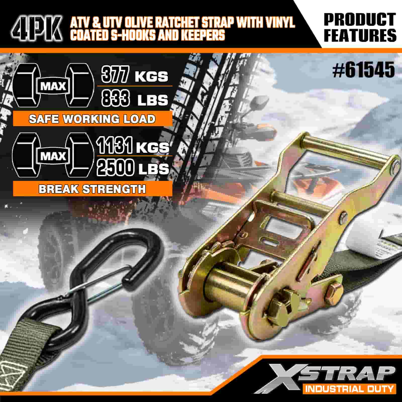 - Lås det og glem det: Disse skrallestroppene er konstruert for å møte strenge globale sikkerhetsstandarder, og holder ATV-en eller UTV-en din låst på plass gjennom gjørme, hjulspor og ulendt terreng. Ikke mer å sjekke lasten midt på turen – utstyret ditt forblir sikkert fra start til slutt.