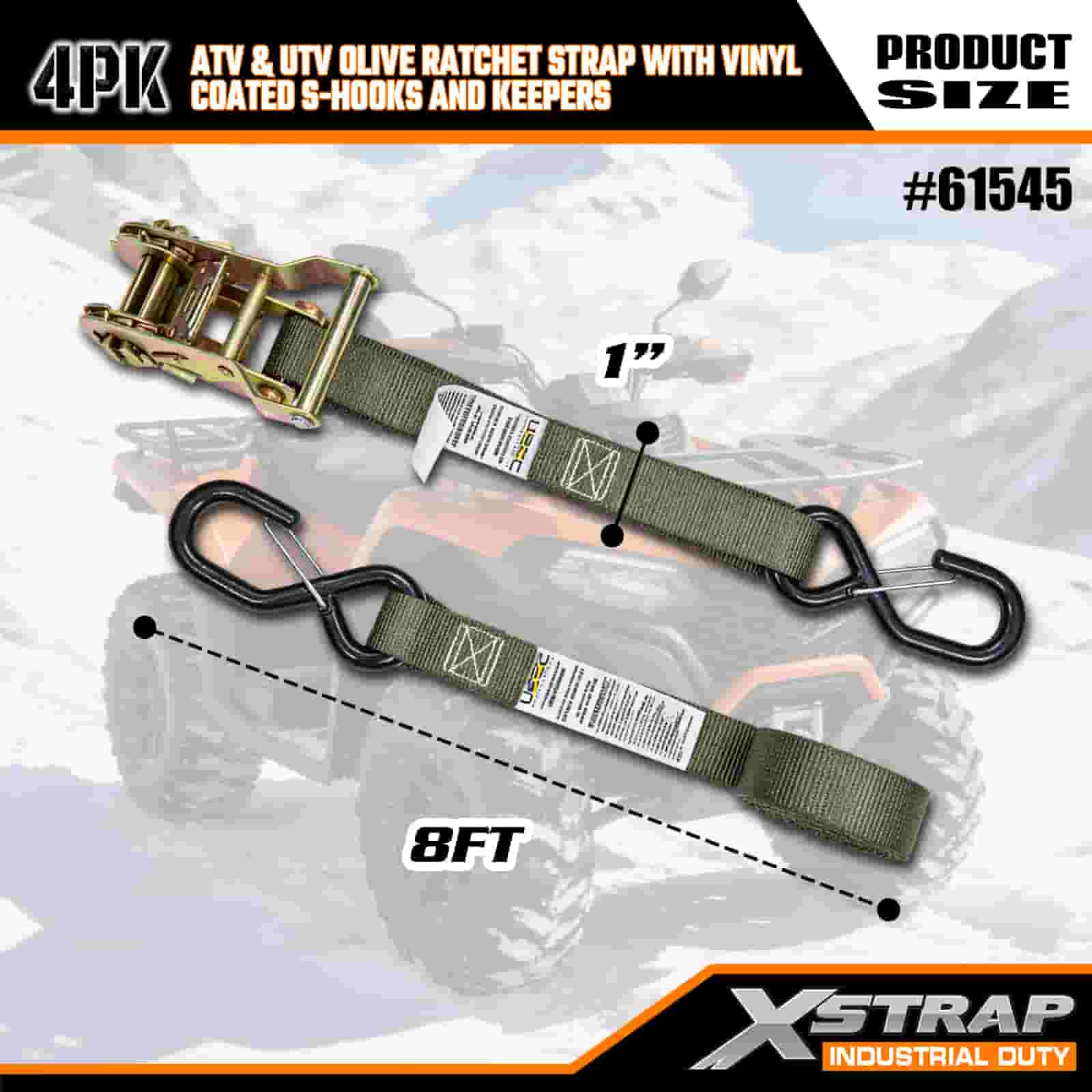 - 4 pakke for total dekning: Dette settet inkluderer 4 stropper, som gir deg nok til å feste både foran og bak på din ATV eller UTV. Lengden på 8 fot passer til lastebilsenger, tilhengere eller festepunkter, slik at du kan få et stabilt grep hver gang.