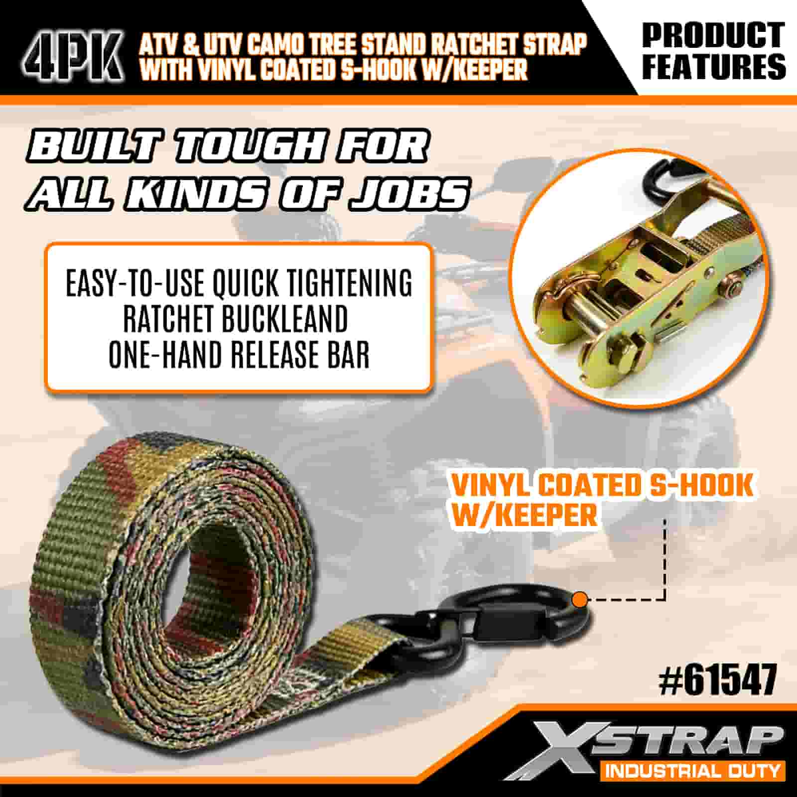 - Bygget for utendørseventyr: Enten du drar et trestativ til jaktstedet ditt eller sikrer deg en motorsykkel for en helgetur, gjør disse stroppene stressende lasting til et raskt, pålitelig trinn. Camo-designet holder utstyret ditt lav profil, slik at du holder fokus på jakten eller stien.