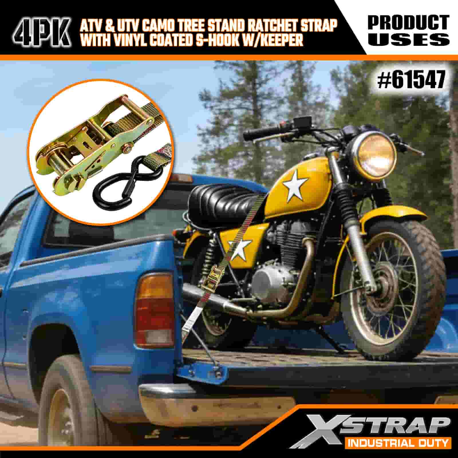 - Smidig design, kompromissløs styrke: Kamuflasjemønsteret blander seg sømløst med skogens omgivelser, mens forsterkede sømmer og en kraftig skralle låser ATV-en, trestativet eller motorsykkelen på plass. Ikke mer å bekymre deg for å flytte last på røffe bakveier eller gjørmete stier.