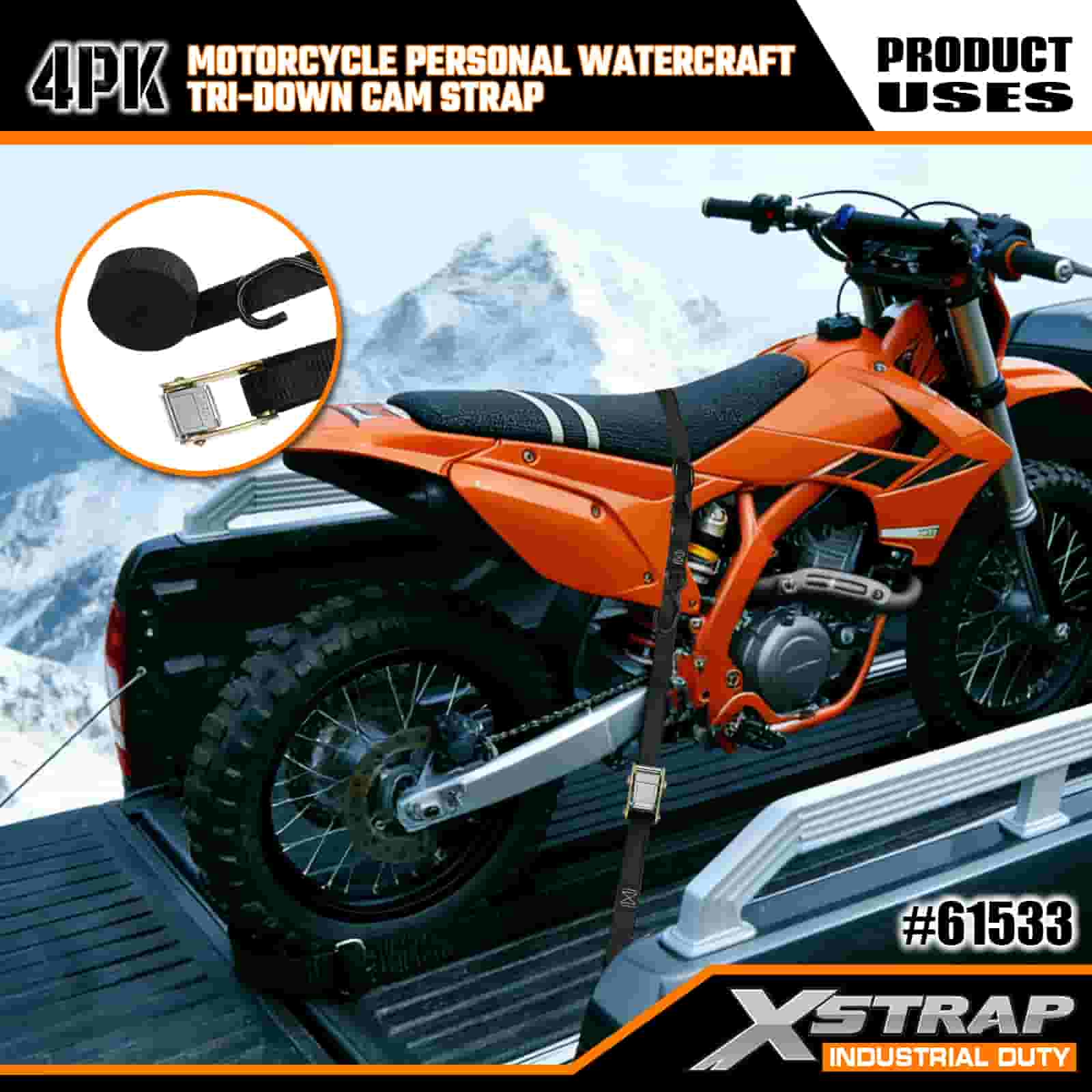 1" x 6' Motorsykkel Vannscooter Tri-Down Cam Strap