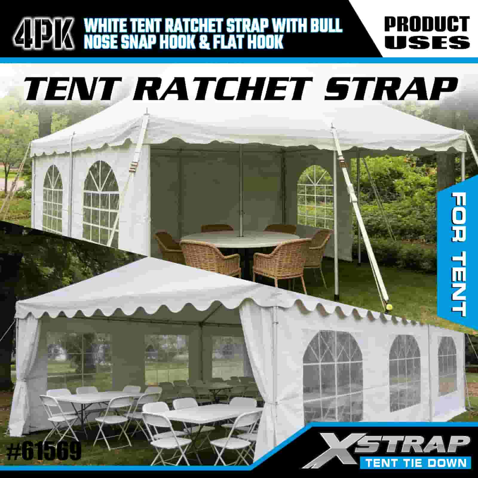 - Event- og campinganker, bygget for sterk vind: Konstruert for å sikre store arrangementstelt, baldakiner og festhytter, gir denne 4-pakken med skrallestropper kompromissløst hold selv under vindkast. Støttet av XStraps 20 år med ekspertise på lastkontroll, forblir lyet ditt forankret gjennom regn, vind og tung bruk.