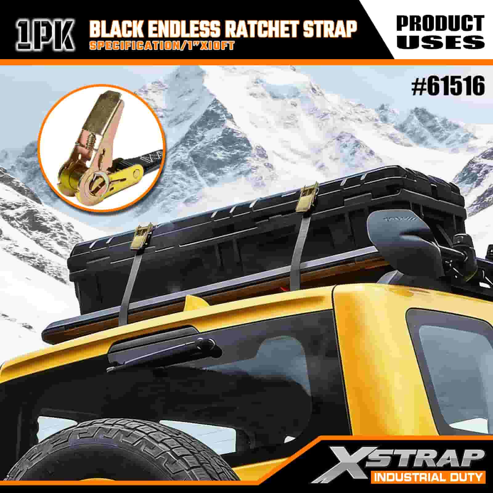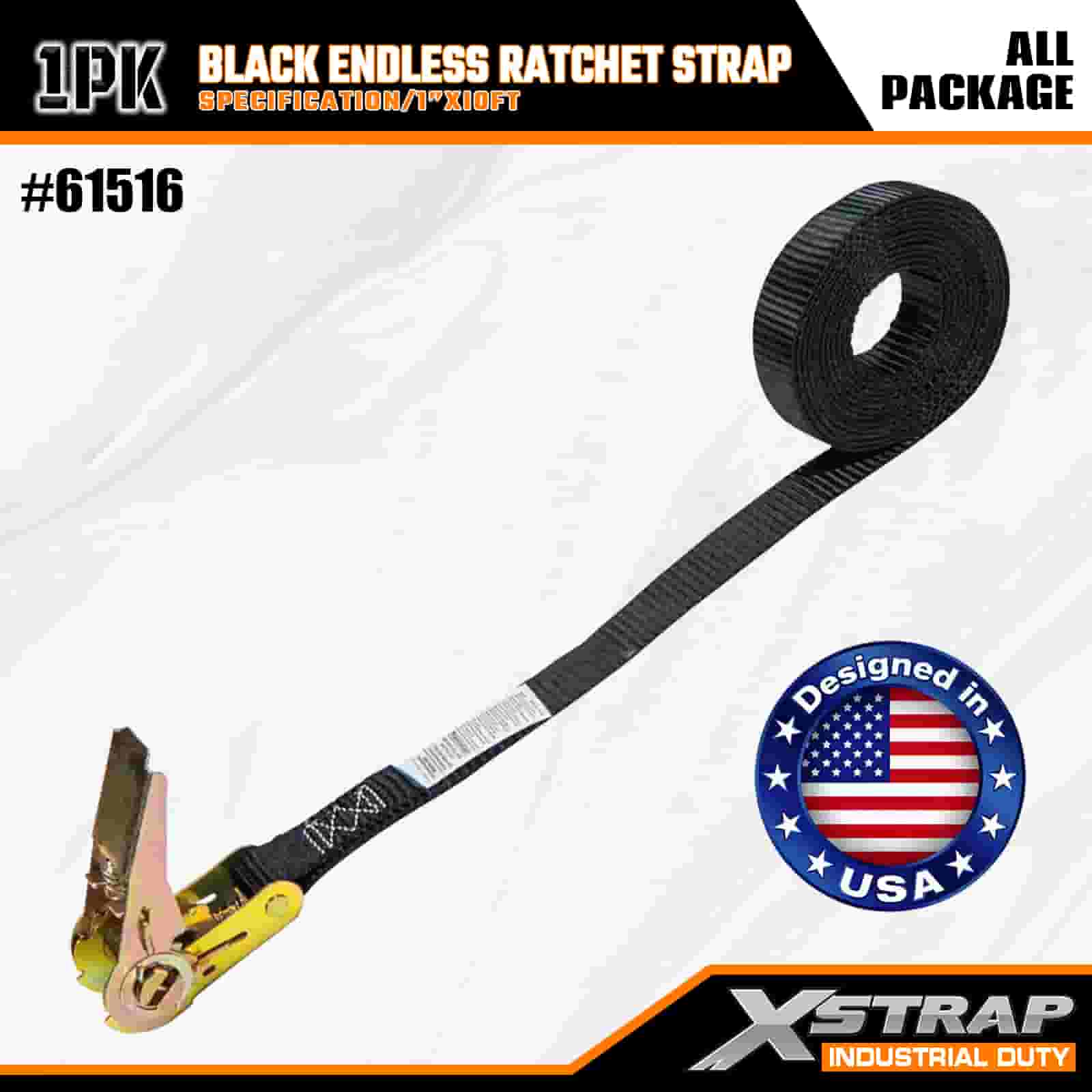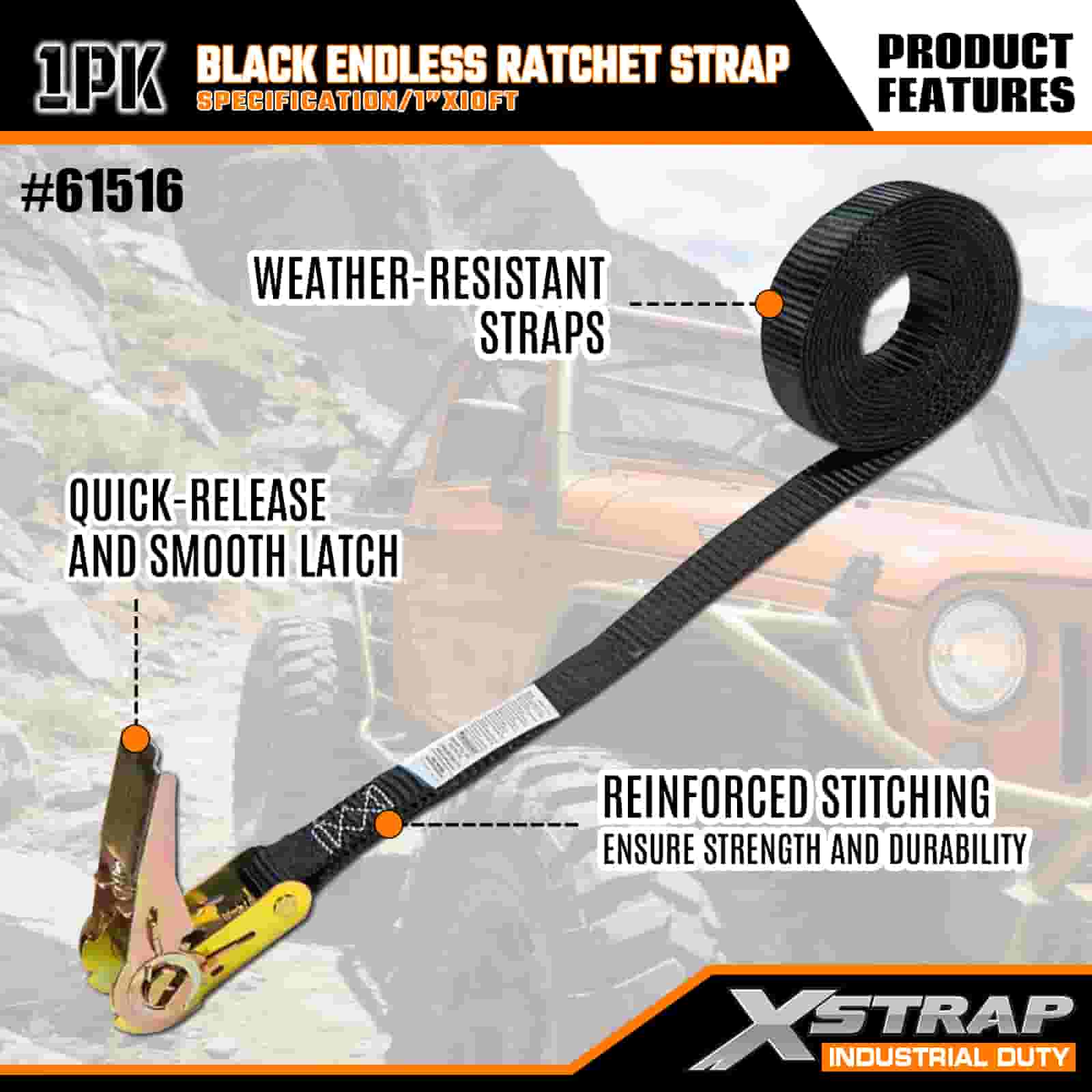 Xstrap Svart Endeløs skrallestropp, 1" x 10" Polyester Tie Down Strap Pull Ratchet Strap, 500lbs Kapasitet Cargo Surring Sikringsstropper for den seriøse profesjonelle for å sikre lasthenger, flathenger, skibåt, liten bil.