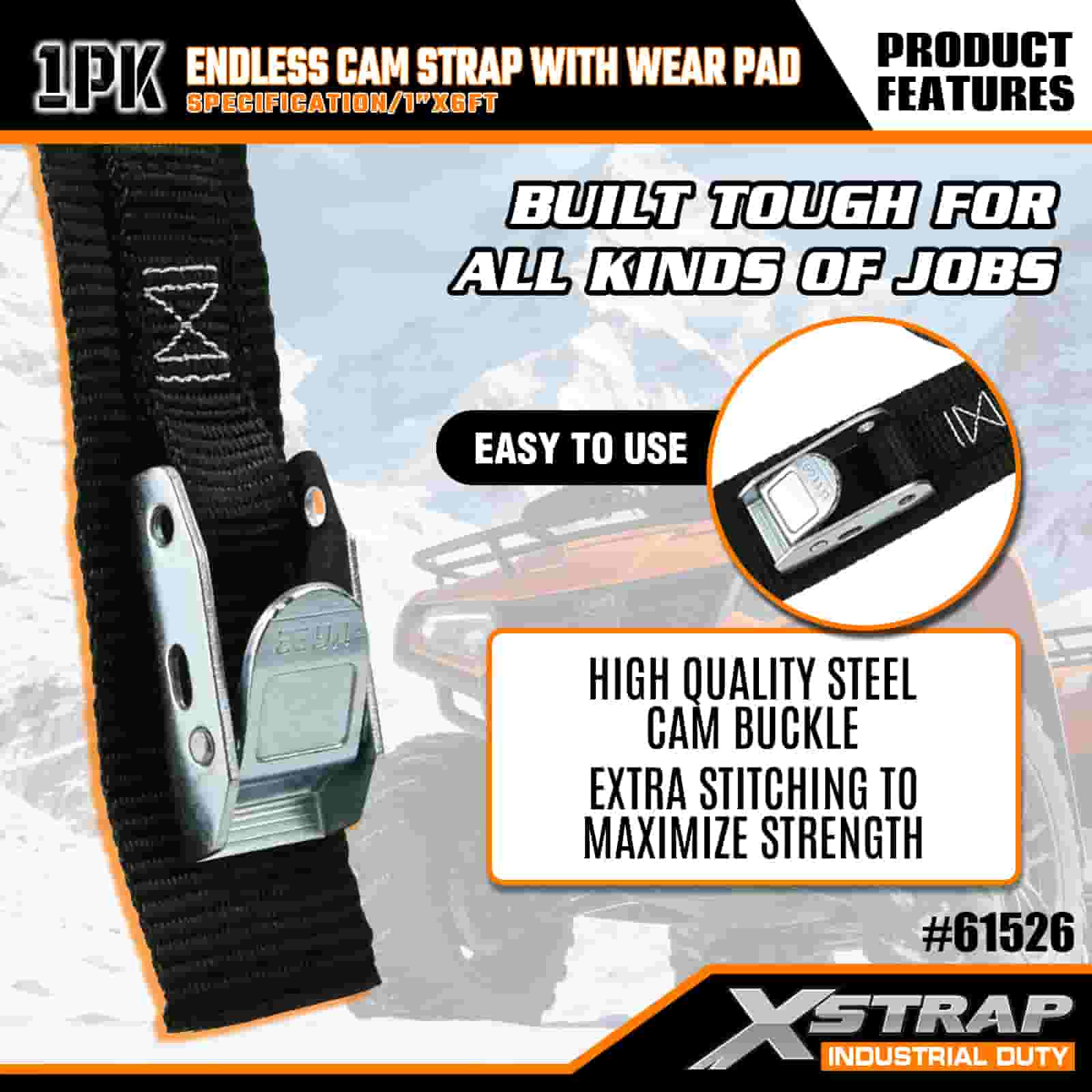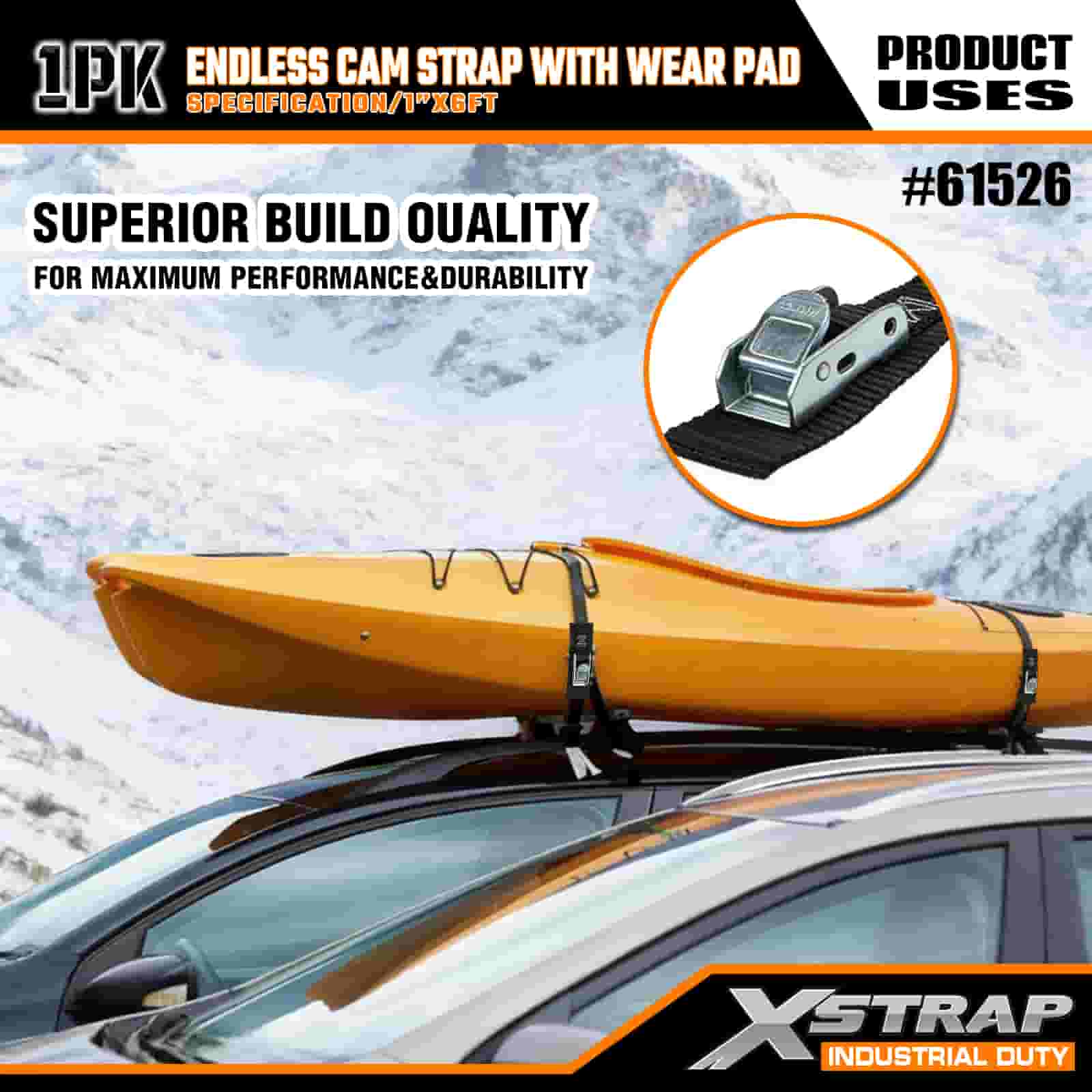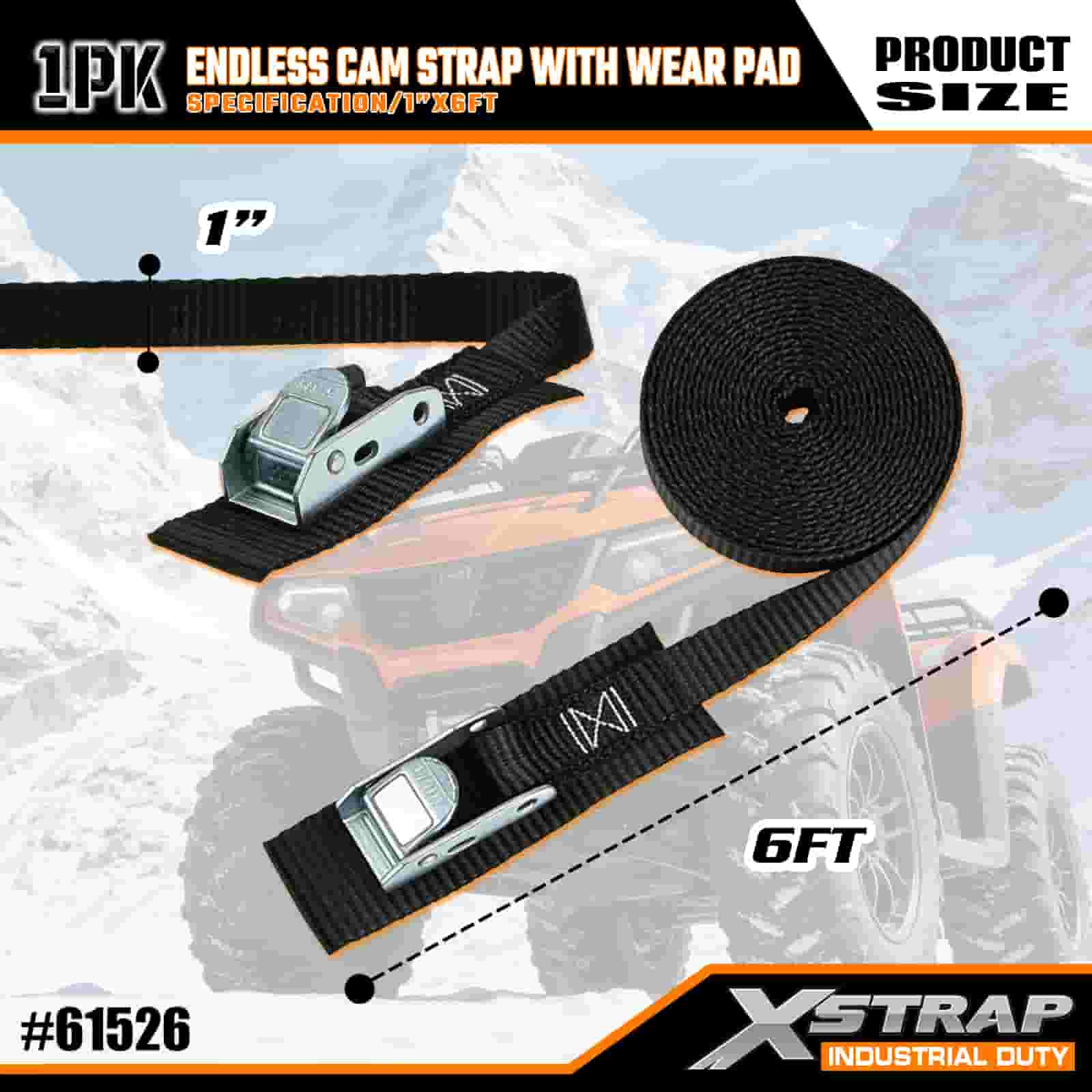 Xstrap Endless Cam Strap med slitasjepute, 1" x 6" Polyester Tie Down Strap Trekk Cam Spenne Strap, 400lbs Kapasitet Laste Surring Sikringsstropper for den seriøse profesjonelle for å sikre lasthenger, flathenger, skibåt, liten bil.