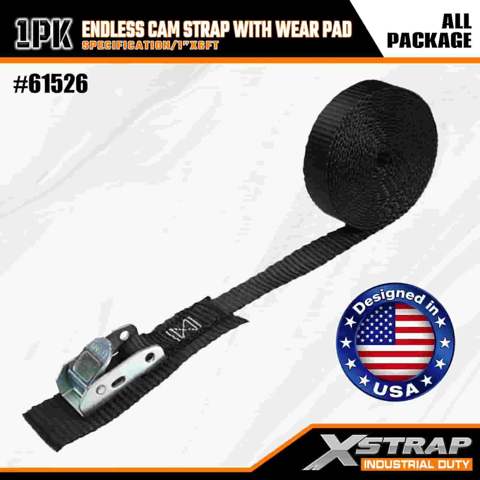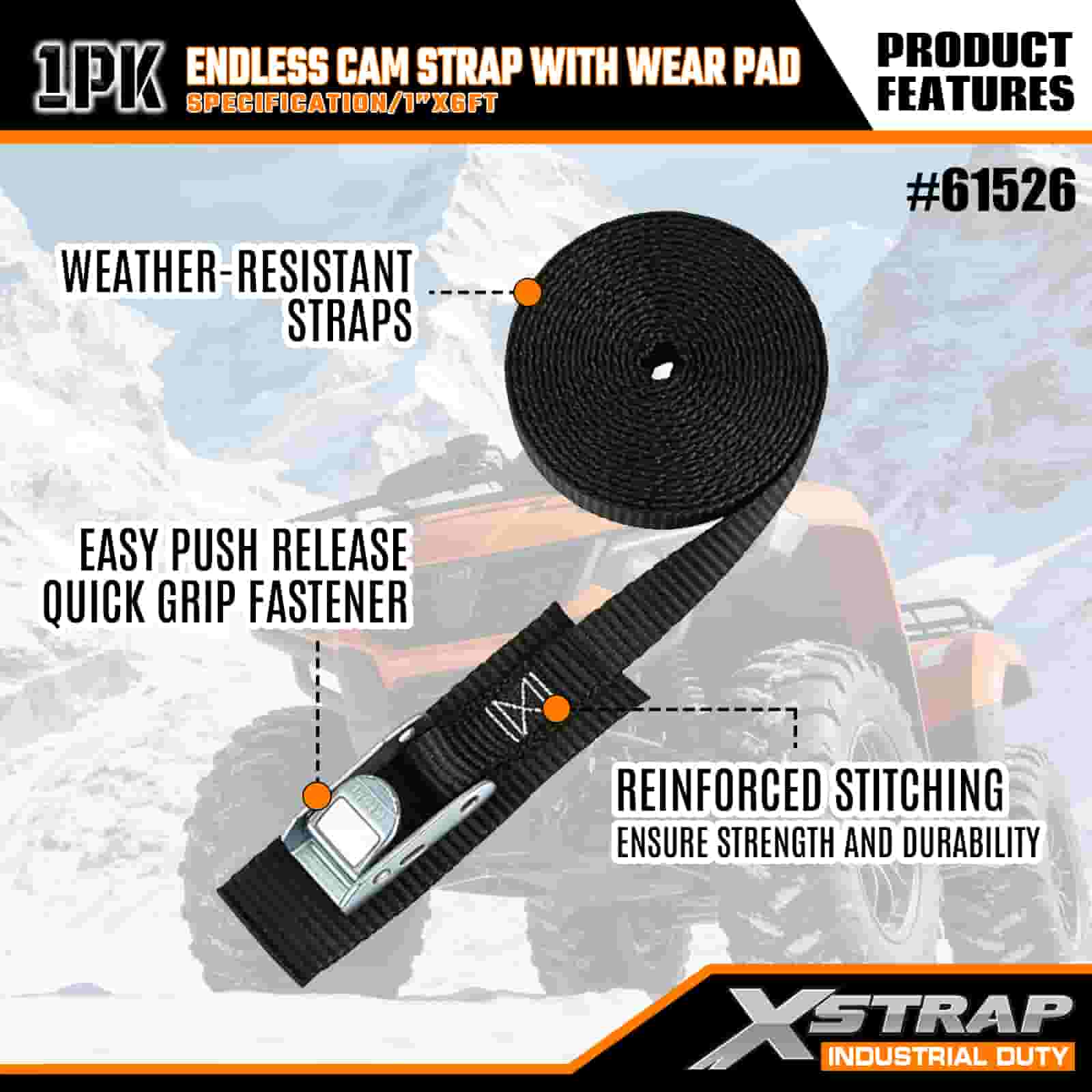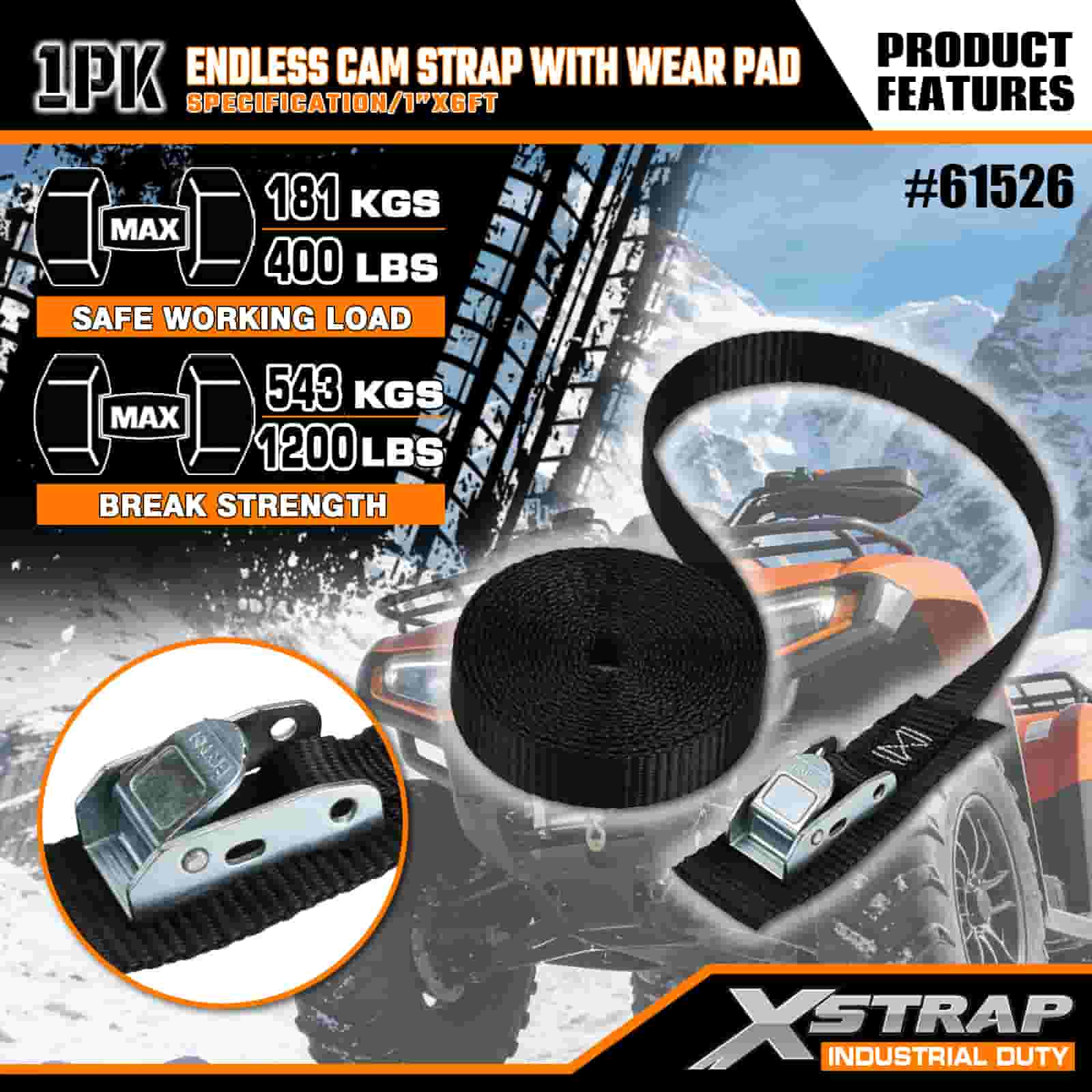 Xstrap Endless Cam Strap med slitasjepute, 1" x 6" Polyester Tie Down Strap Trekk Cam Spenne Strap, 400lbs Kapasitet Laste Surring Sikringsstropper for den seriøse profesjonelle for å sikre lasthenger, flathenger, skibåt, liten bil.