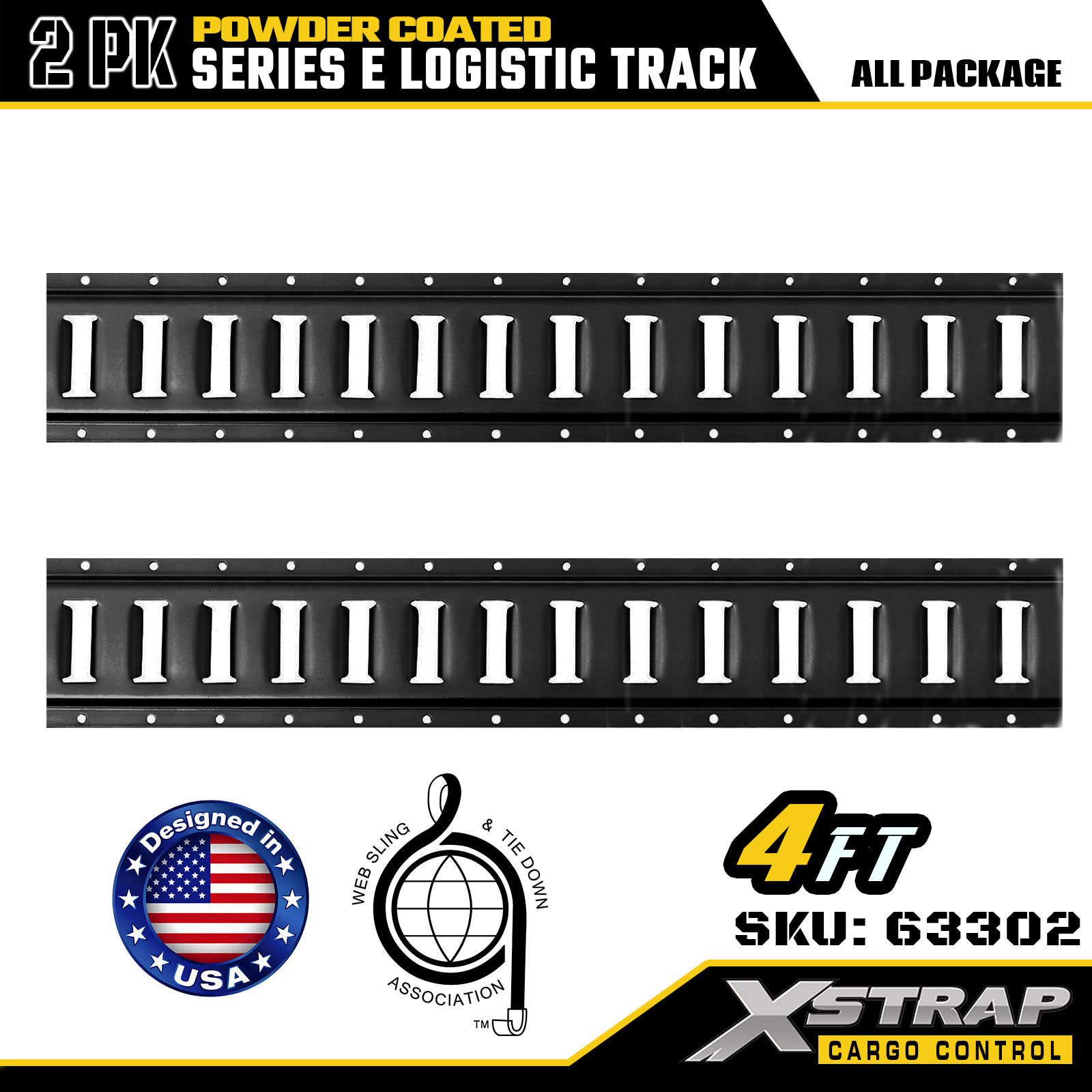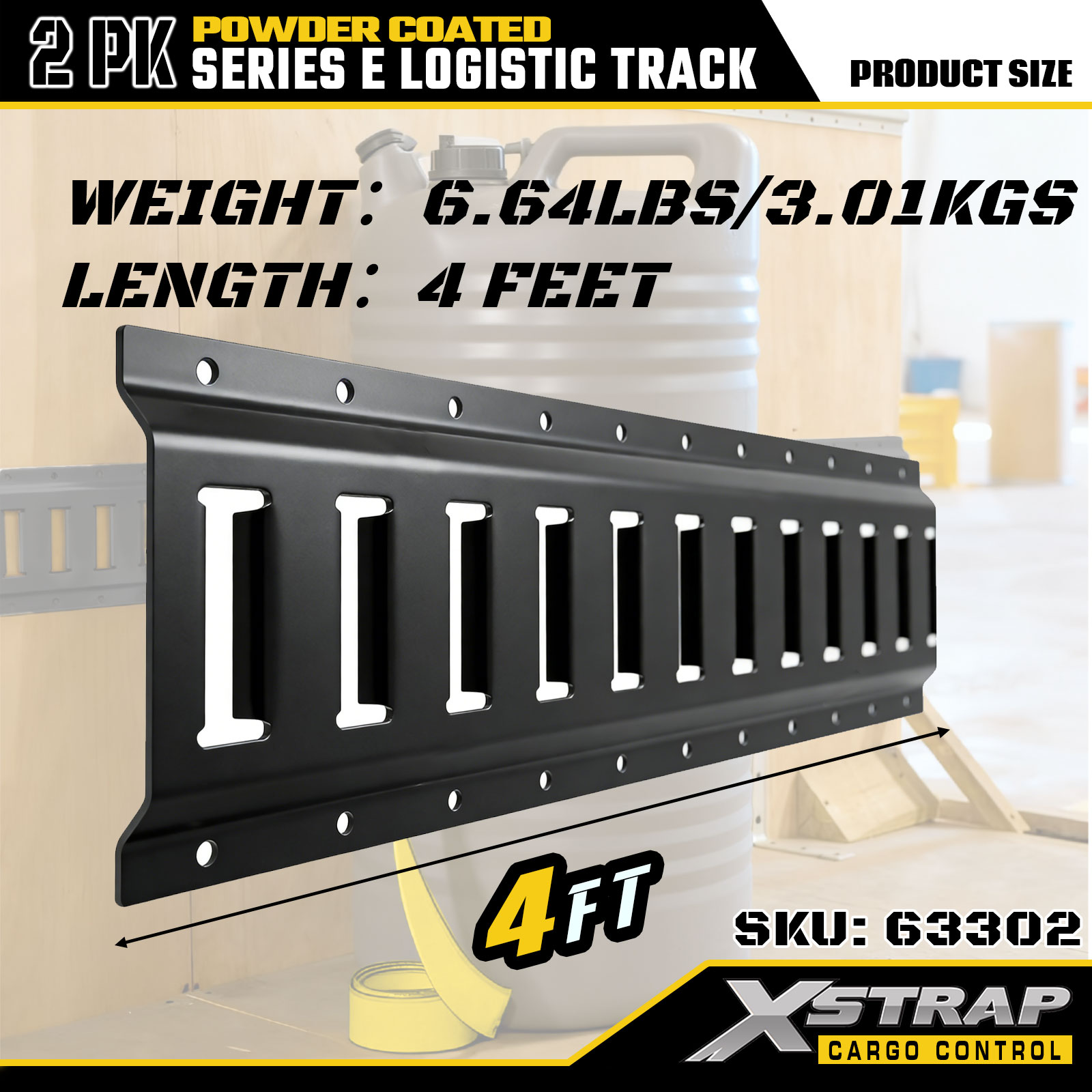 Xstrap 63302 4 fot grå E Logistic Track - 12-Gauge stål med pulverlakk, 6000LBS kapasitet, 2PK for lastkontroll