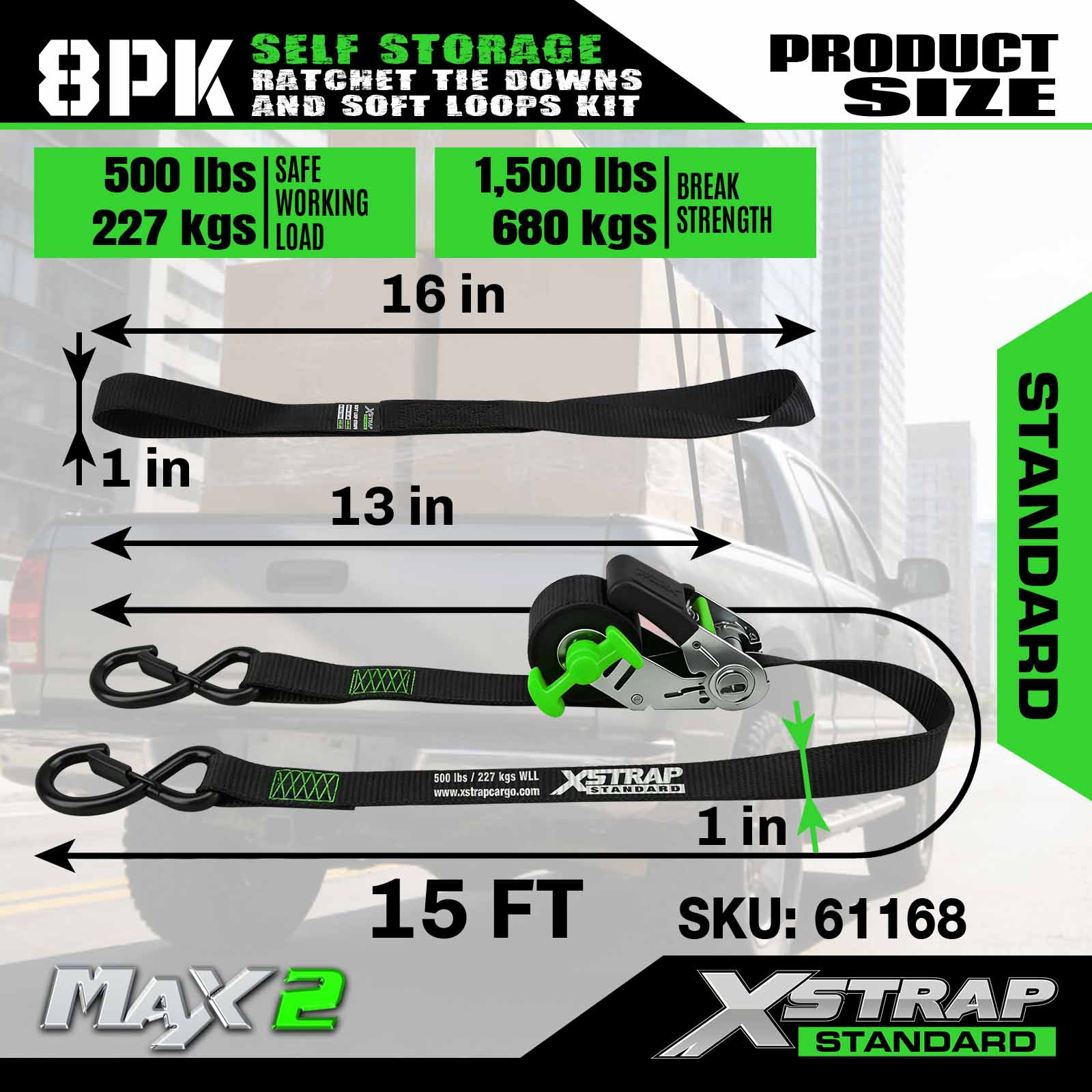 Xstrap 61168 1 tommer 15 fot selvoppbevarende skrallefeste 500LB SWL