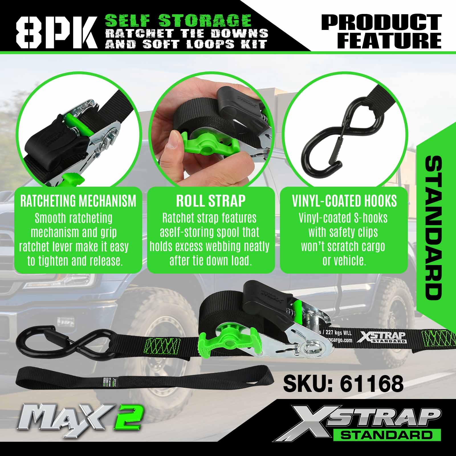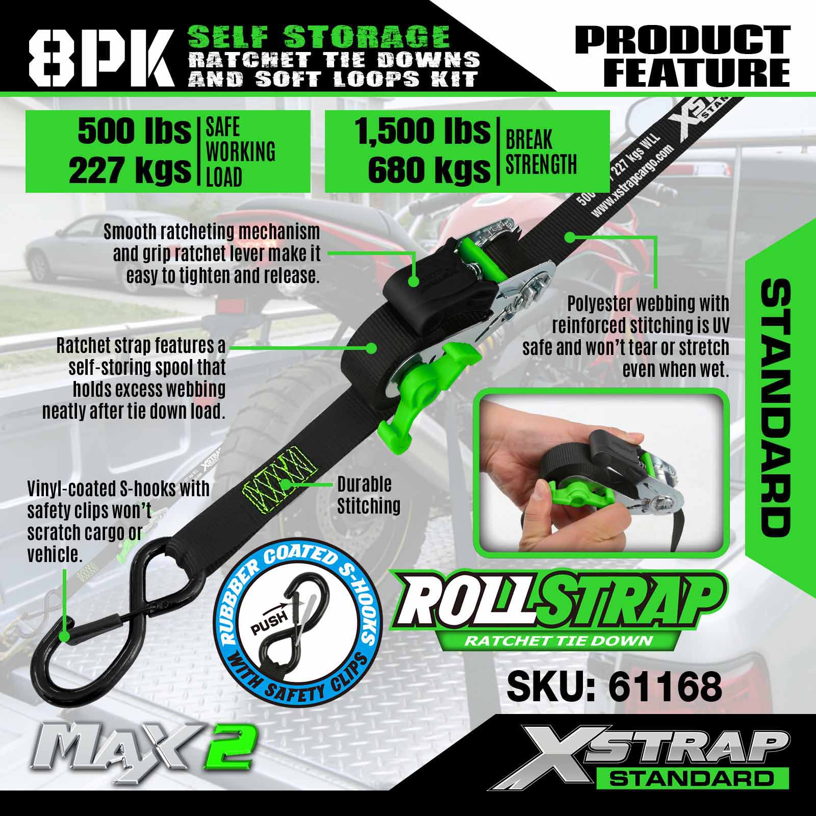 - Ikke mer sammenfiltrede søl - Sammenlignet med andre vanlige skrallestropper, kan Xstrap selvoppbevarende skrallestropper hjelpe til med å vikle båndet på spolen, og da blir det ikke noe søl.