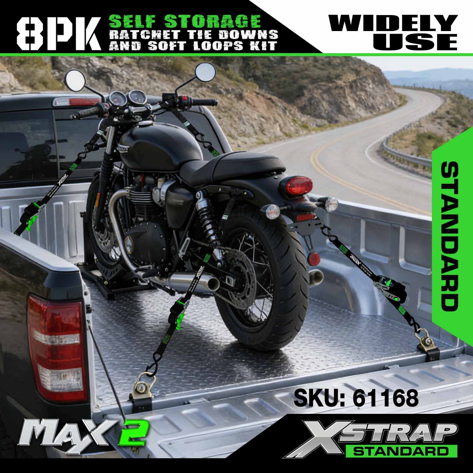 Dette er Xstrap 1"×15" spennebånd. Det er et sett med 4 stk. Skrallestroppene brukes vanligvis til flytting, apparater og motorsykler.