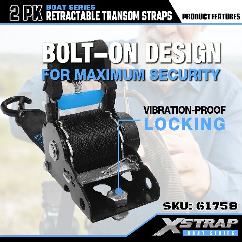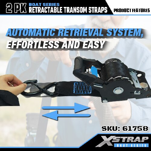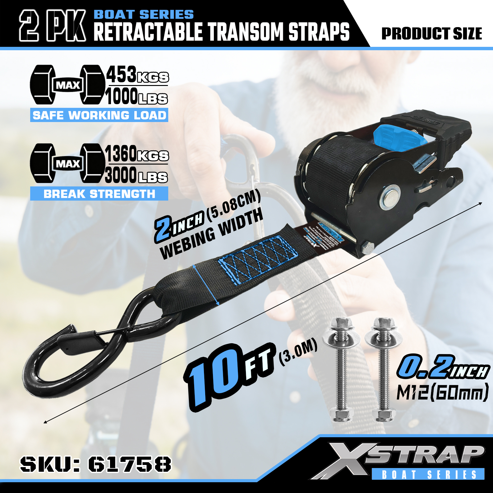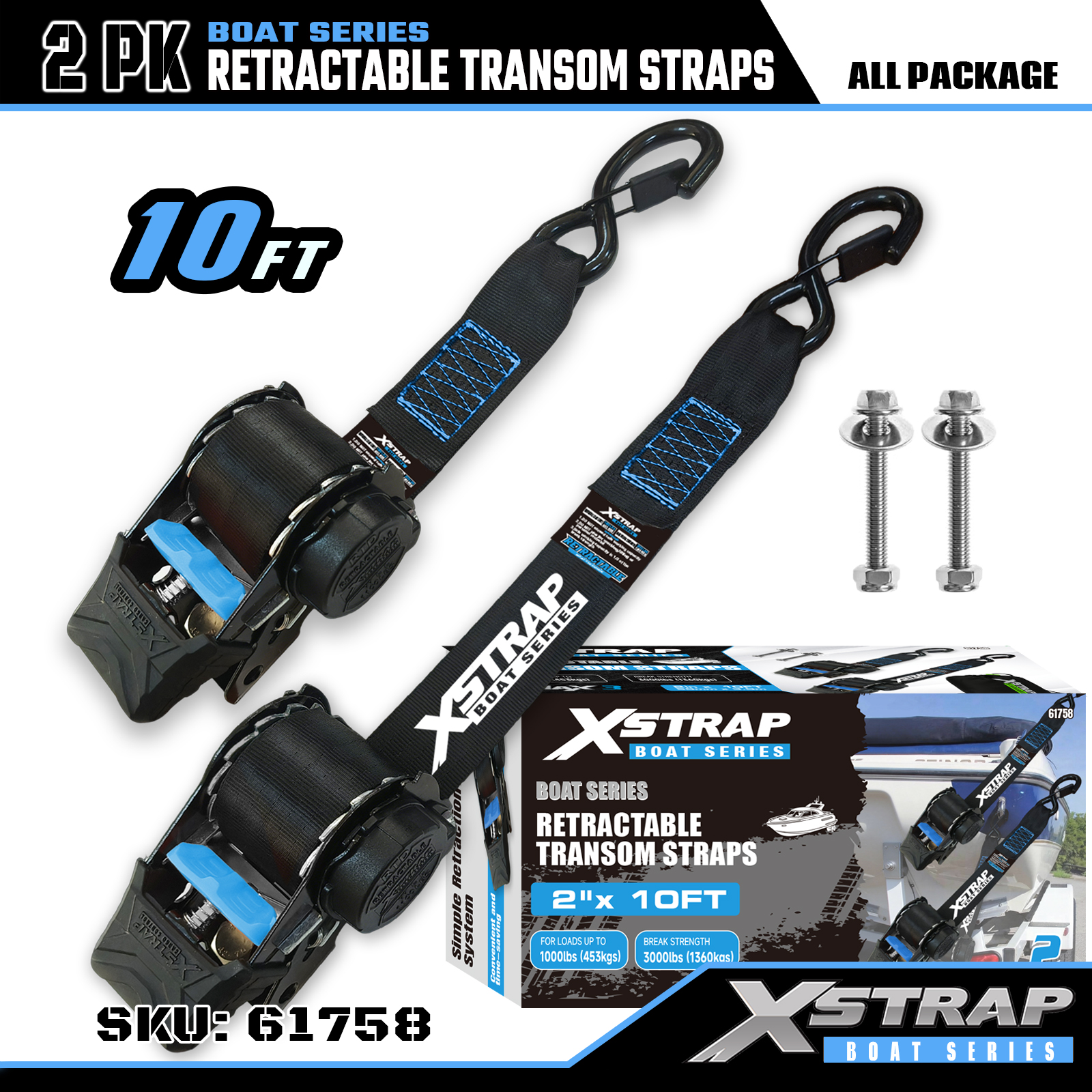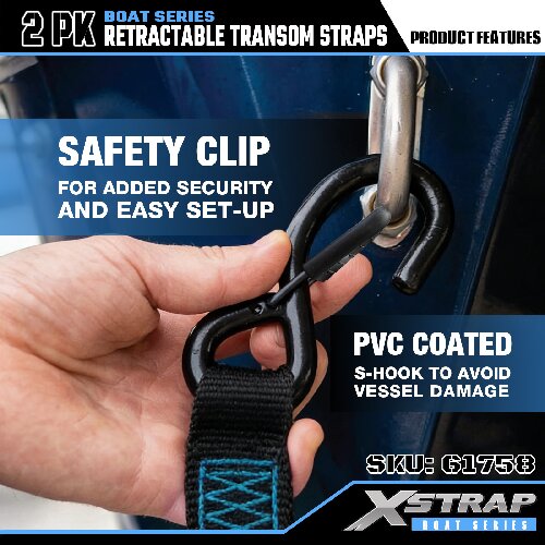 Xstrap 61758 uttrekkbare akterspeilstropper med sikkerhetskroker 1000 LB SWL