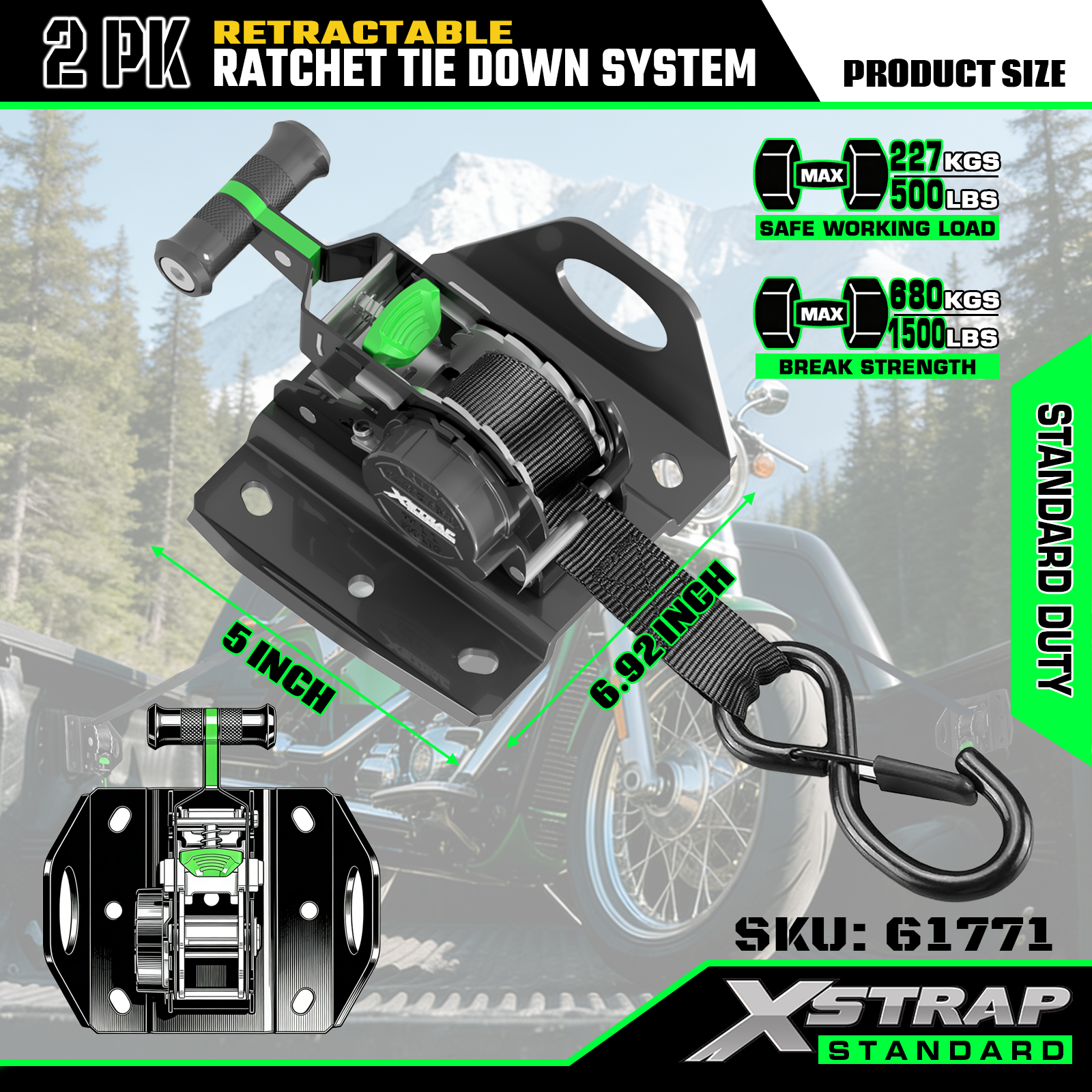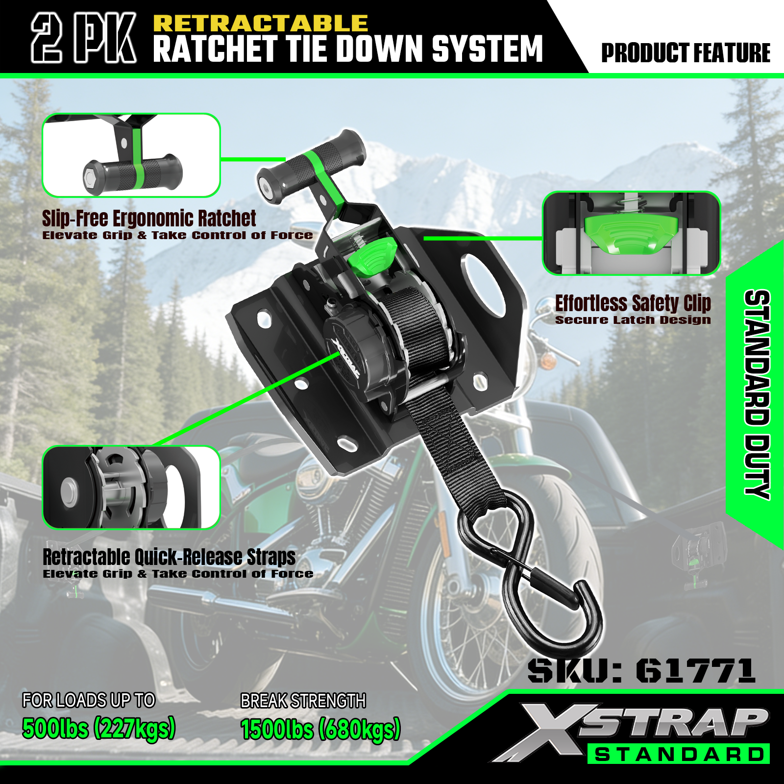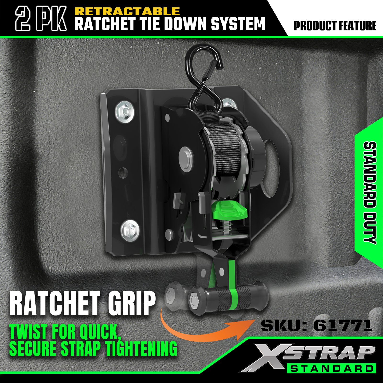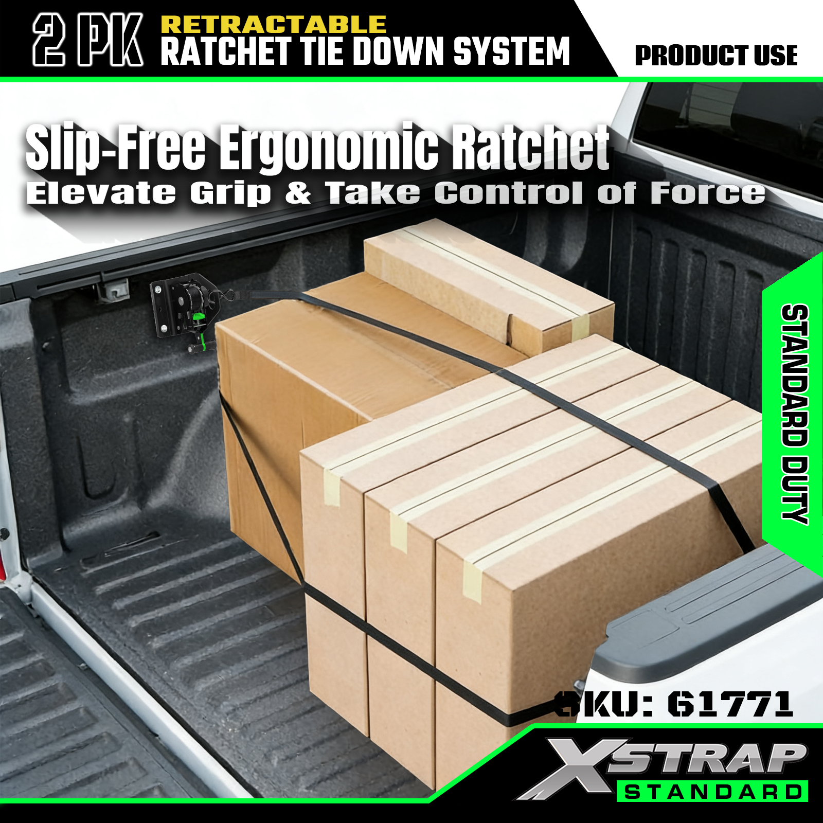 Xstrap 61771 uttrekkbare skrallestropper Passer til F150 biltilbehør 500LB SWL