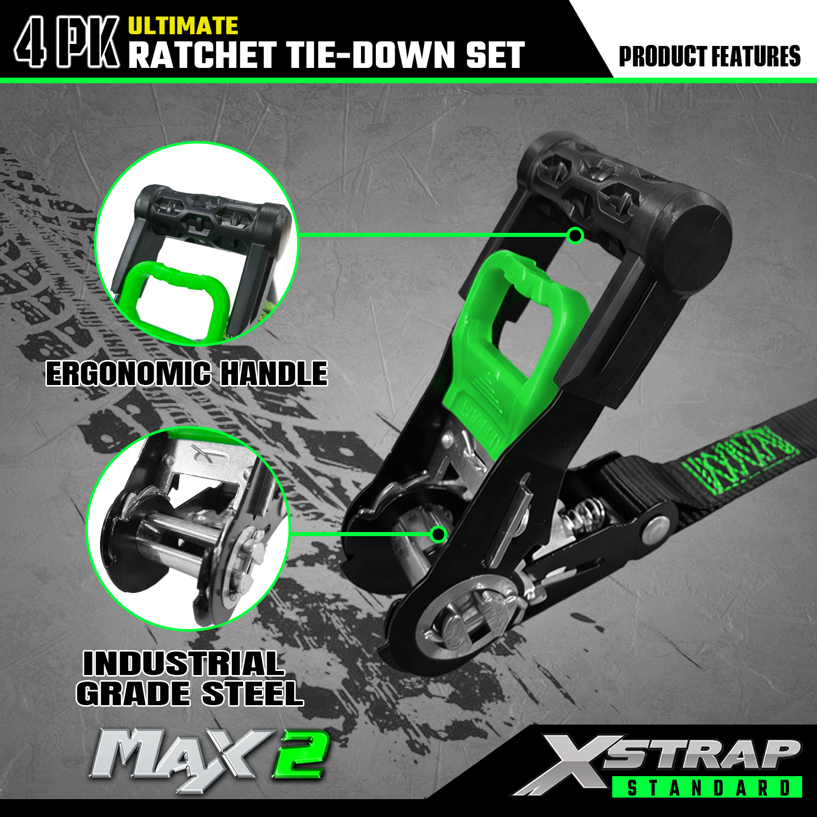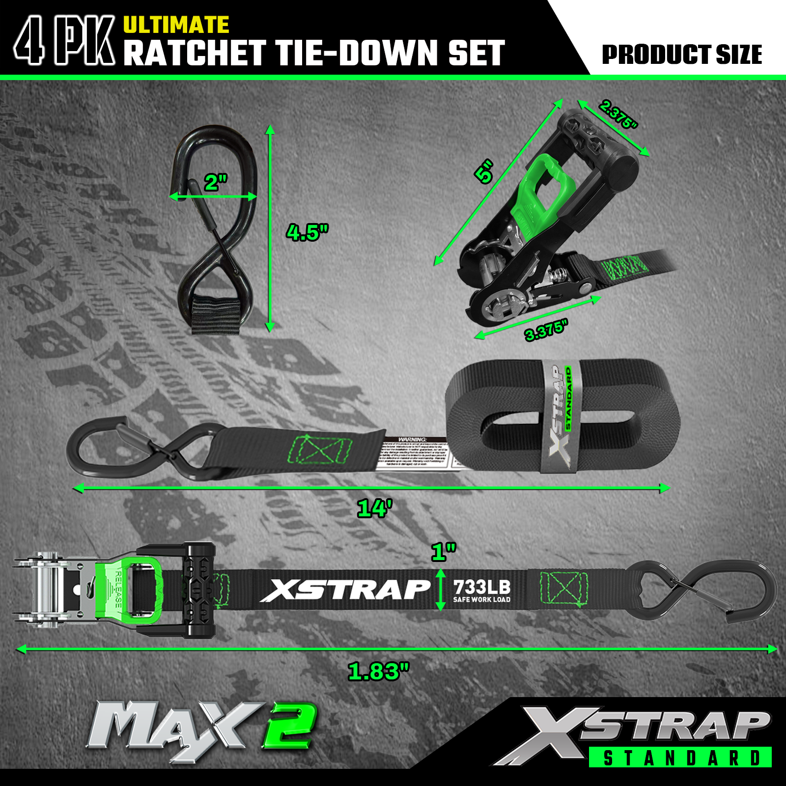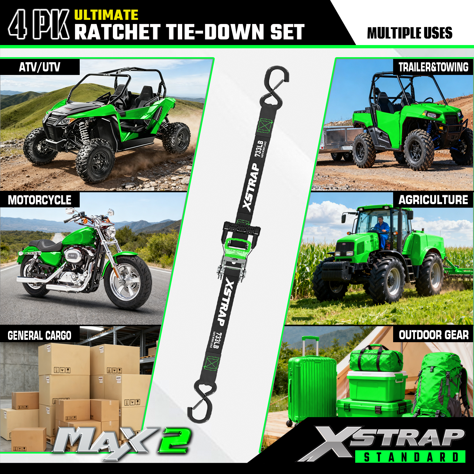 - Pålitelig transport: 4pk skrallefestebåndene tilbyr 733lb SWL og 2200lb BS. Det kan gi sikker transport for motorsykler, apparater og plenutstyr