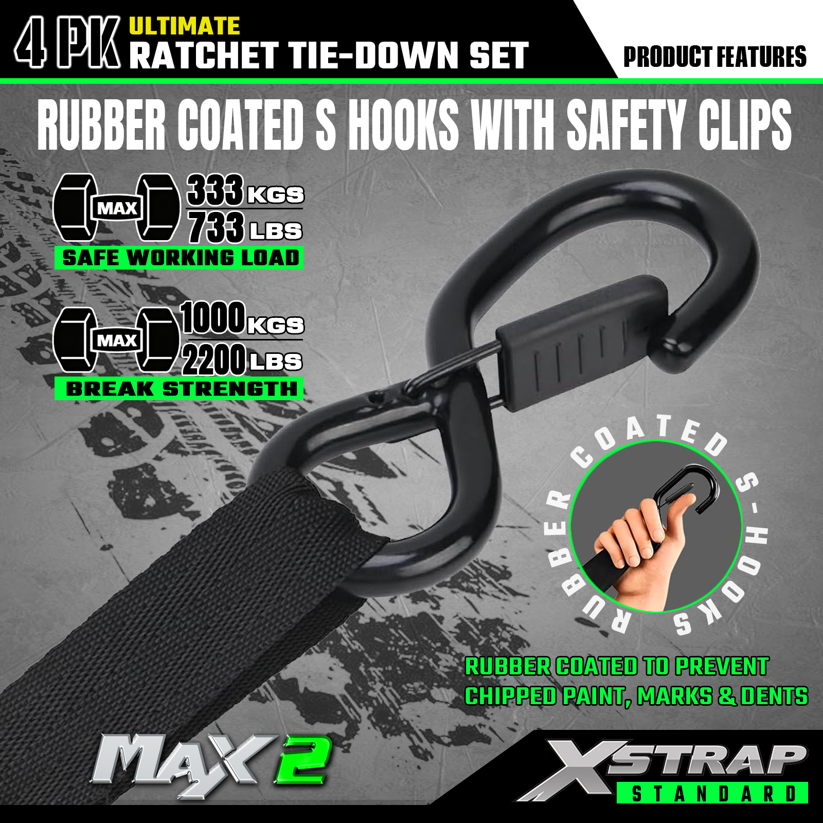 - Kraftig konstruksjon: skralleen er designet med høykvalitets hvite sinkmetallmaterialer og krokene er svartbelagt. Så den kan motstå slitasje og beskytte lasten din mot skade under transport.