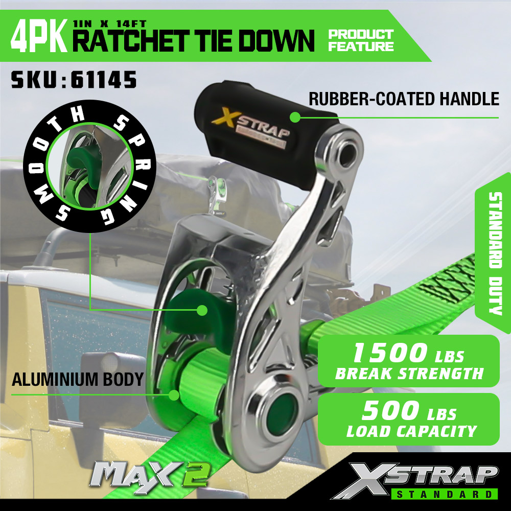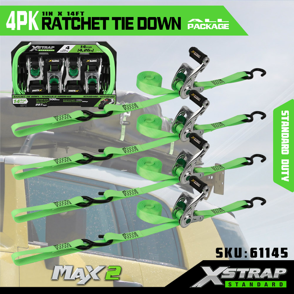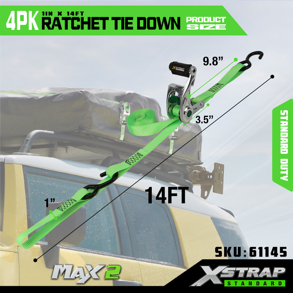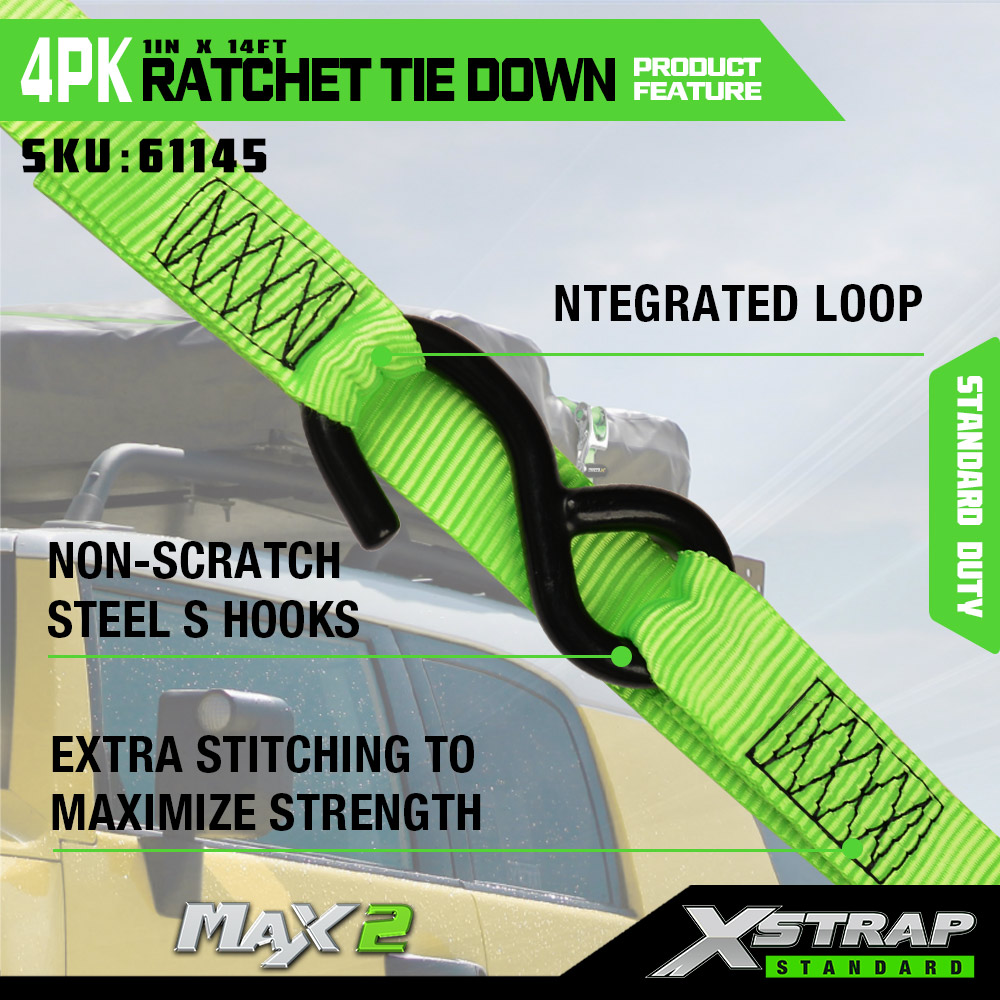 Xstrap 4-paks skrallefeste med myk løkke, 1" x 14" polyester festestrop Trekk skrallestropp, 1000 lbs Kapasitet Laste surre sikringsstropper med S kroker for lastebil, SUV, bil topp stativer motorsykkel.