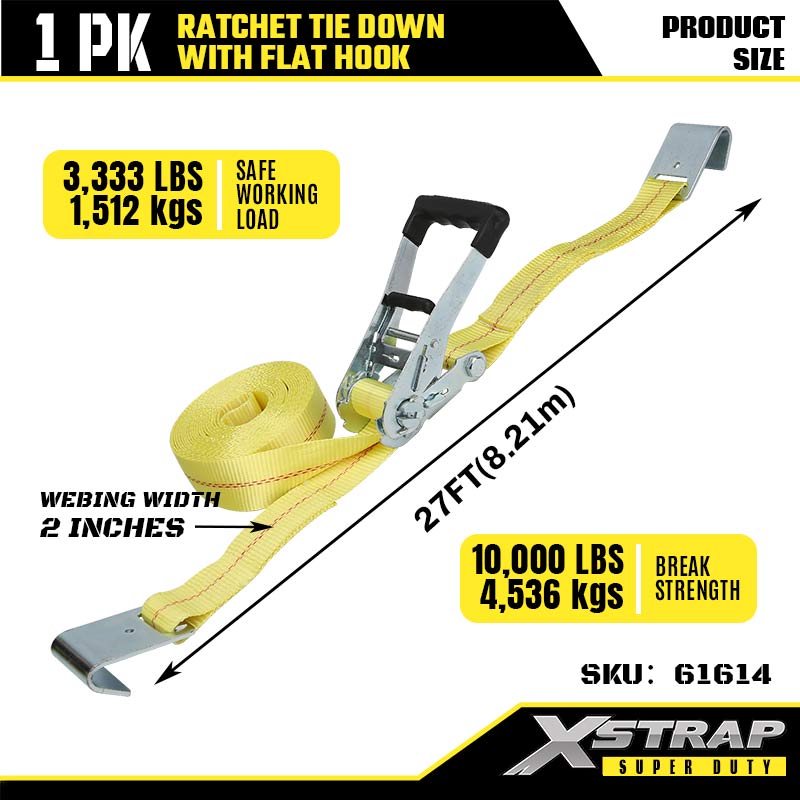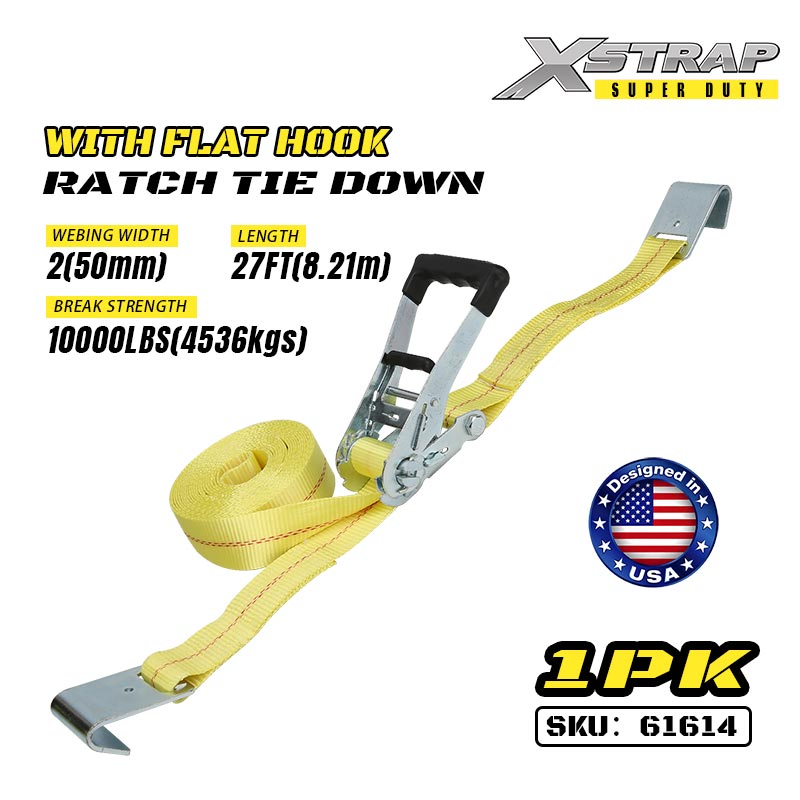 2" x 27' Ratcet Tie Down med flate kroker