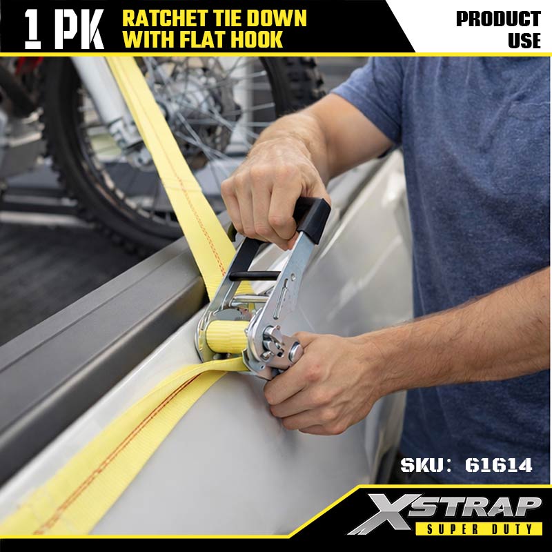 Xstrap Ratcet Tie Down med flate kroker, 2” x 27’ Polyester Tie Down Strap Ratchet Strap, 3333lbs Kapasitet Cargo Surring Sikringsstropper med flate kroker for Heavy Duty Trailer, Flat Bed Trailer Skibåt, Småbil, Tungt Utstyr.