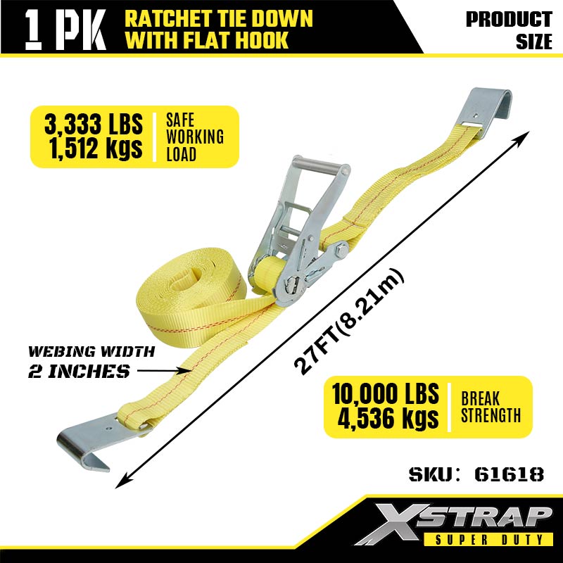 2" x 27' Ratcet Tie Down med flat kroker