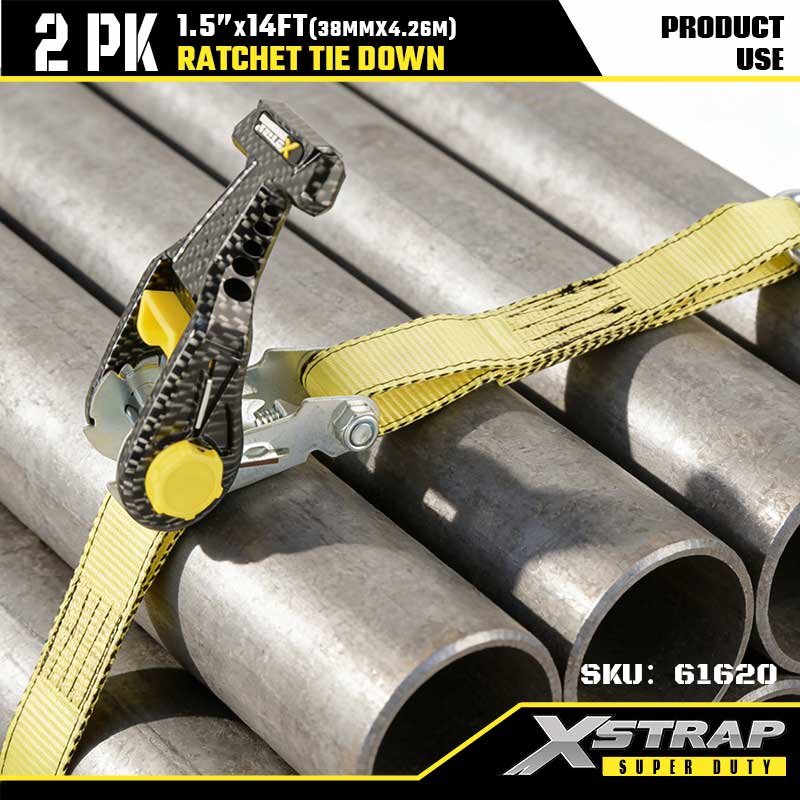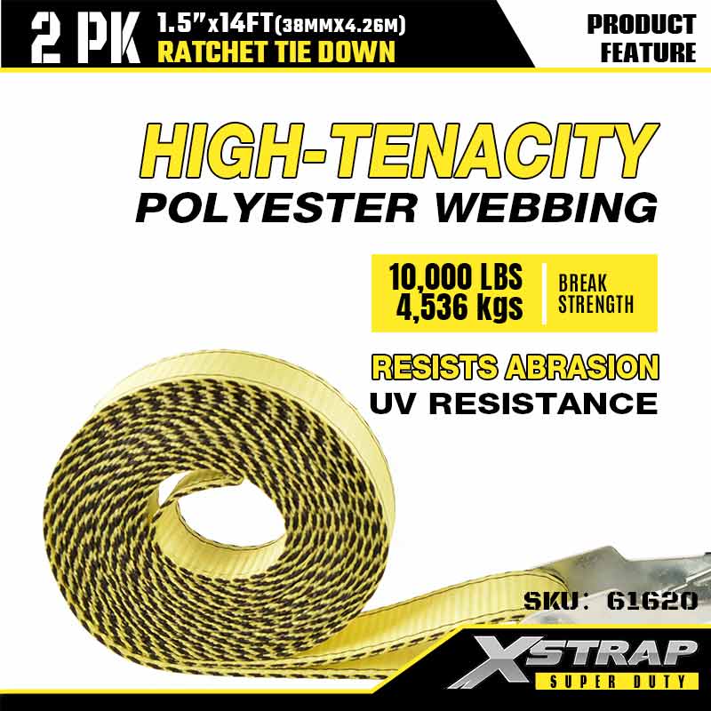 1-1/2" x 14' Ratcet Tie Down med dobbel J-kroker
